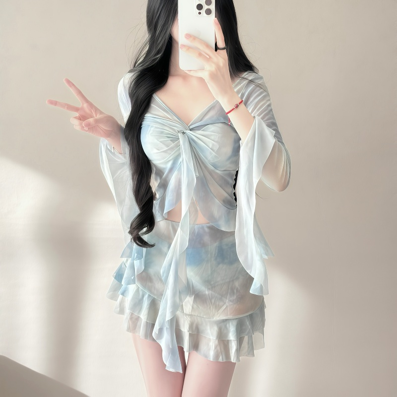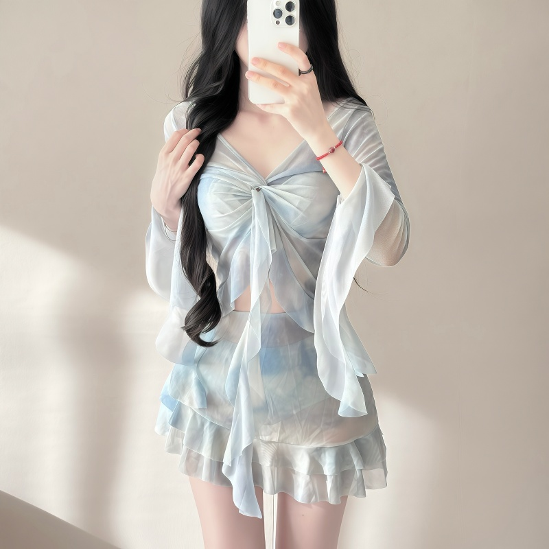 小胸聚拢绝美少女泡温泉 罩衫 泳衣女款 高级感分体比基尼四件套长袖