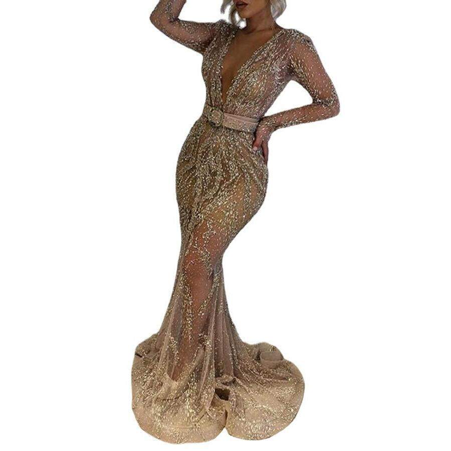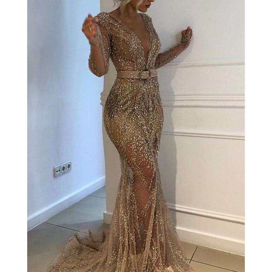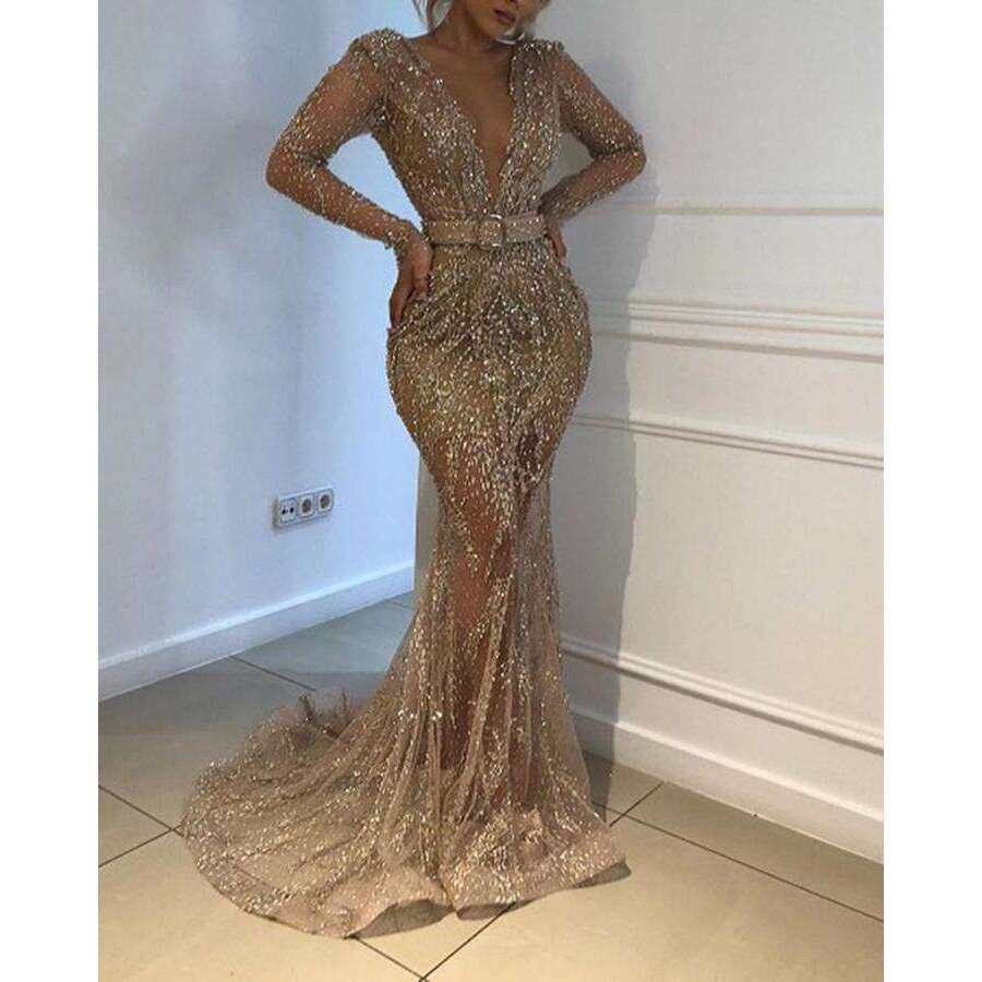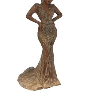宴会礼服大摆裙婚纱 独立站ebay性感亮片长袖 新款 2020外贸女装