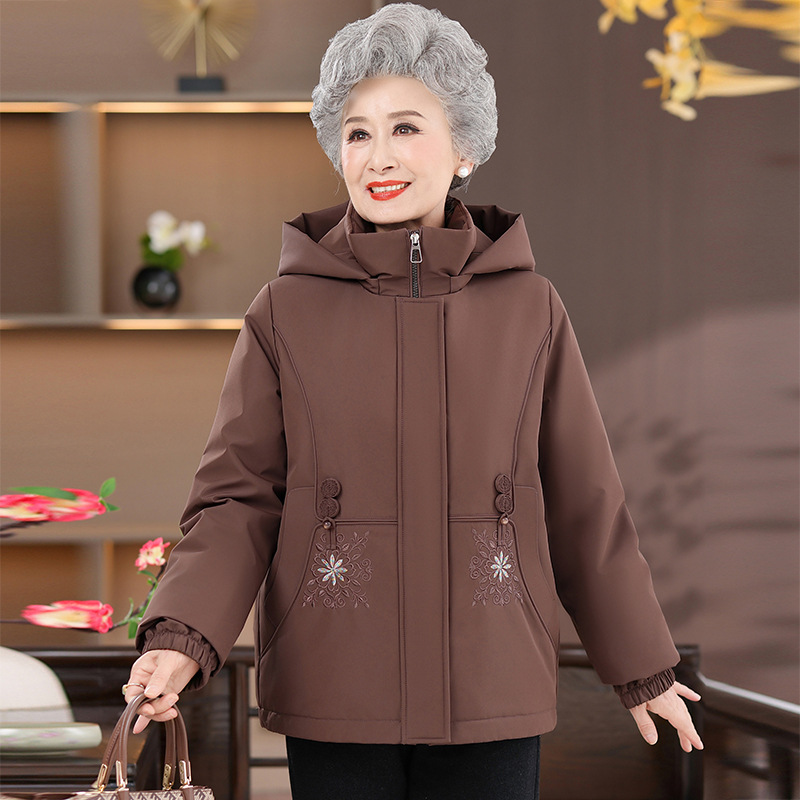 女 200斤宽松老年人洋气时尚 胖妈妈奶奶冬装 羽绒服外套加肥加大码