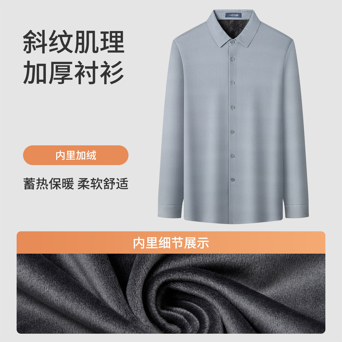 衬衫 外贸秋冬季 男士 免烫抗皱羊毛长袖 男 加绒加厚保暖衬衣商务正装