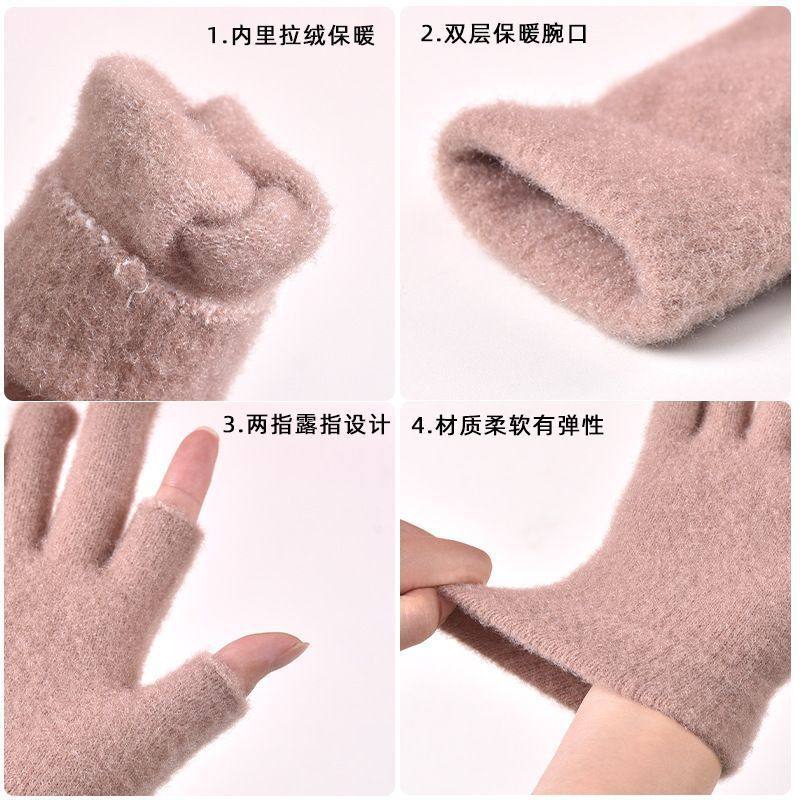 韩国东大门羊羔绒手套耳罩套装 保暖可爱露指骑行防风护耳 少女冬季