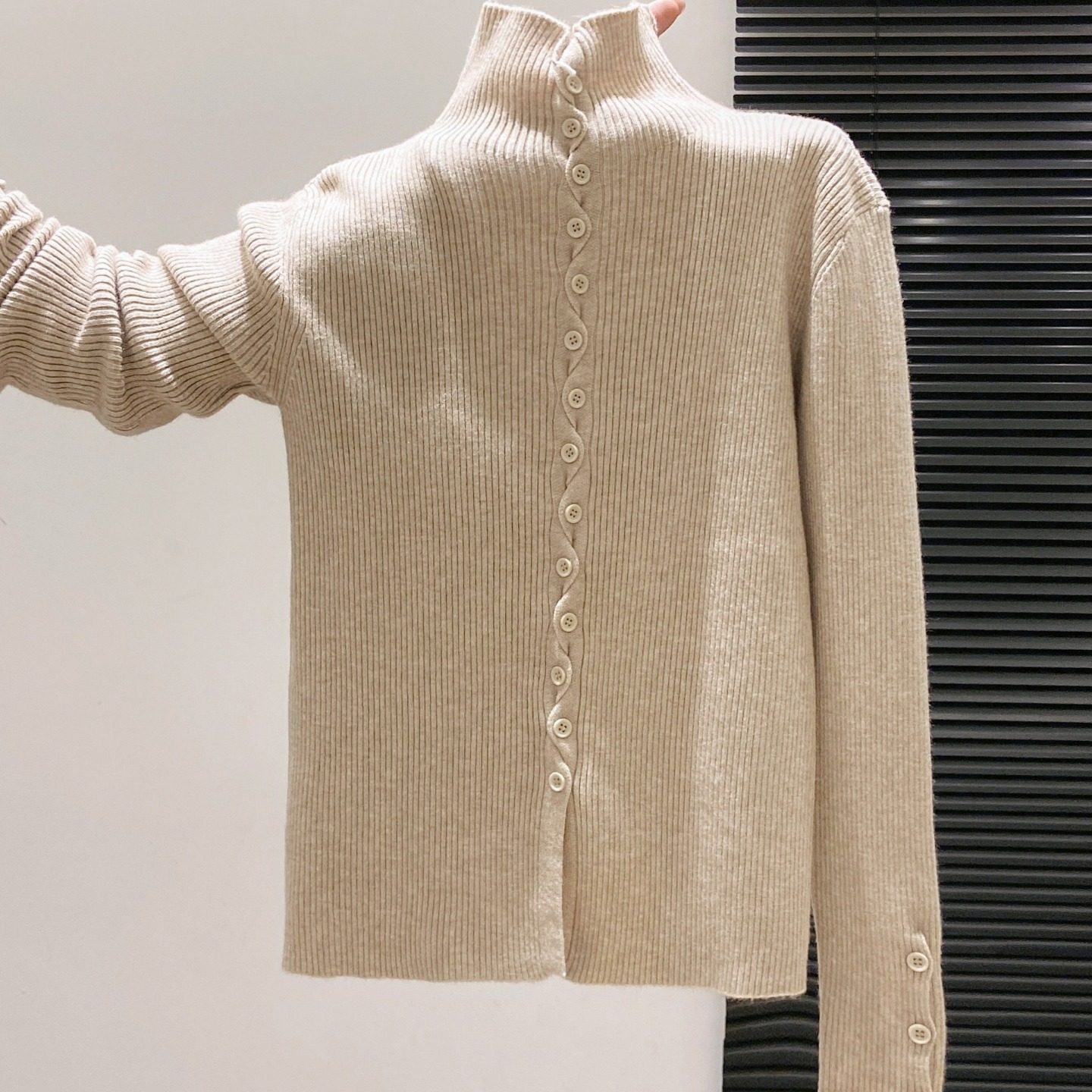 内搭打底衫 秋冬修身 毛衣产后喂奶上衣 外出哺乳针织开衫 高领辣妈款
