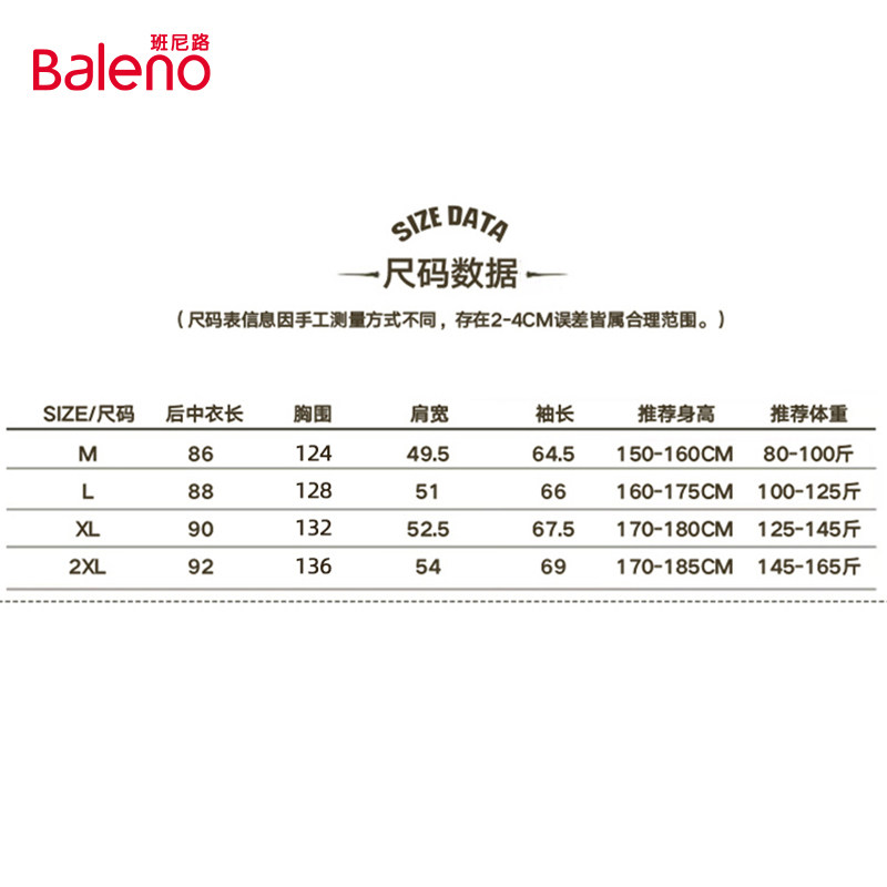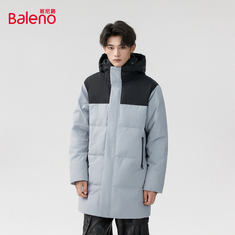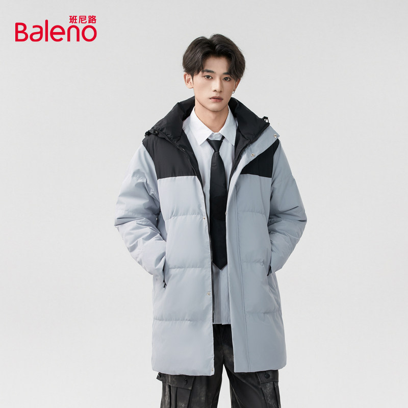 保暖情侣新款 拼色羽绒外套时尚 连帽羽绒服D 长款 Baleno班尼路男装