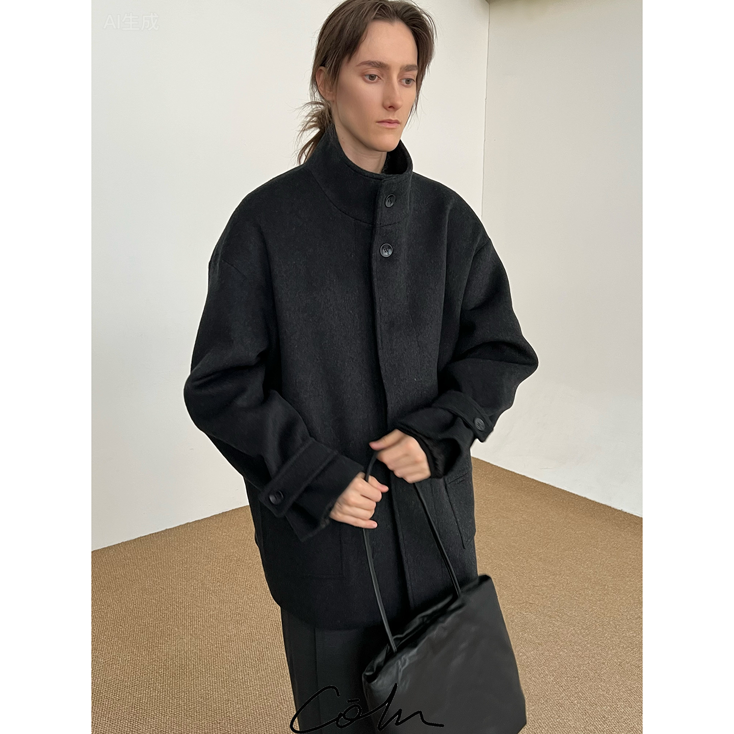 灰 剪裁有着懂藏锋 COLN羊毛混纺立领大衣清隽也优雅 知进退