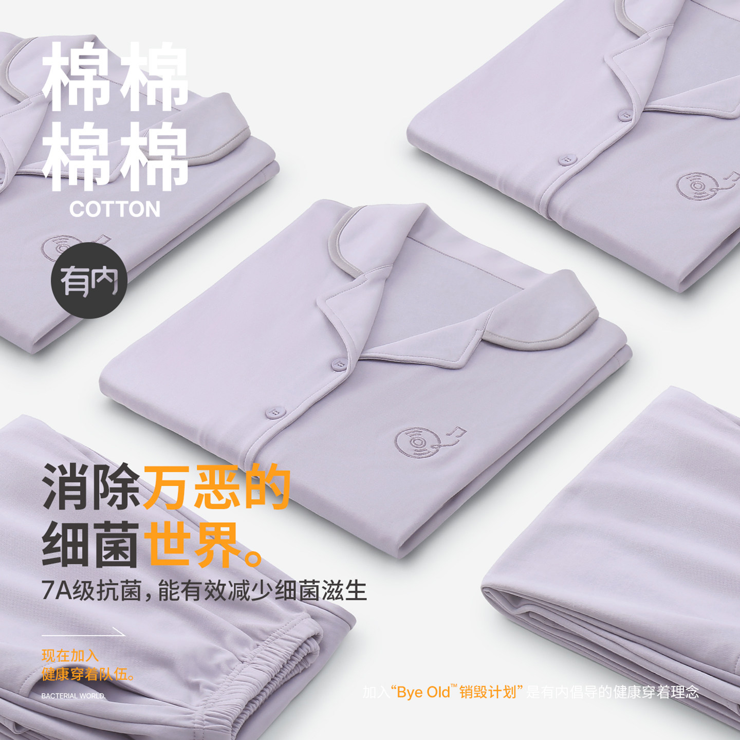 外套 冬装 全棉时代男女士华夫格夹棉可外穿家居服套装 保暖睡衣睡裤