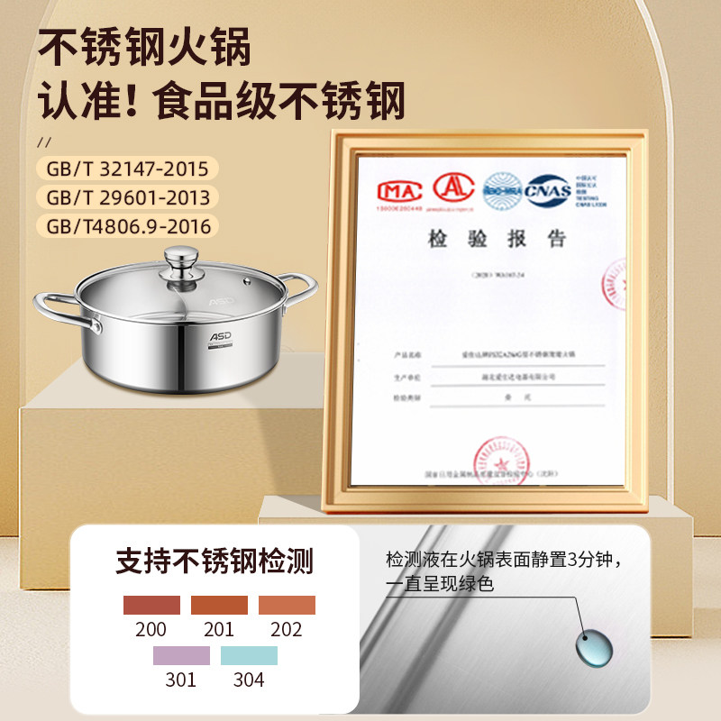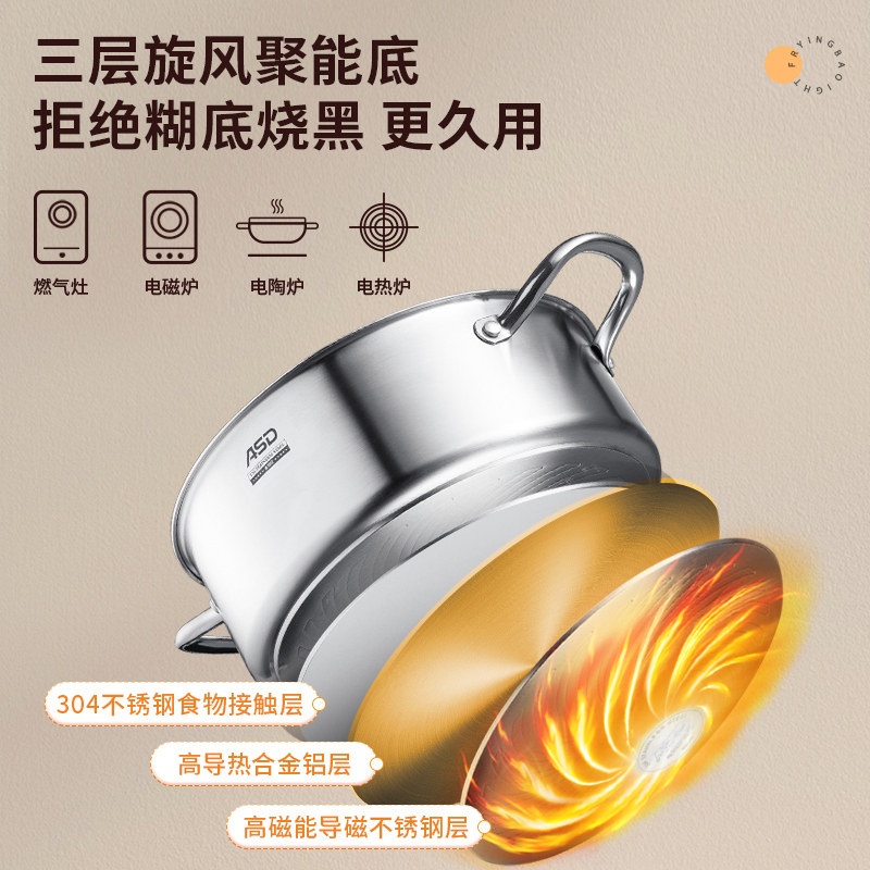爱仕达鸳鸯锅清汤锅火锅不锈钢锅家用电磁炉加厚304火锅盆电磁炉