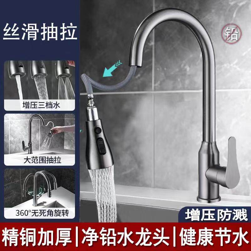 全铜厨房水龙头冷热二合一家用洗菜盆洗碗池水槽精铜抽拉式 防溅水
