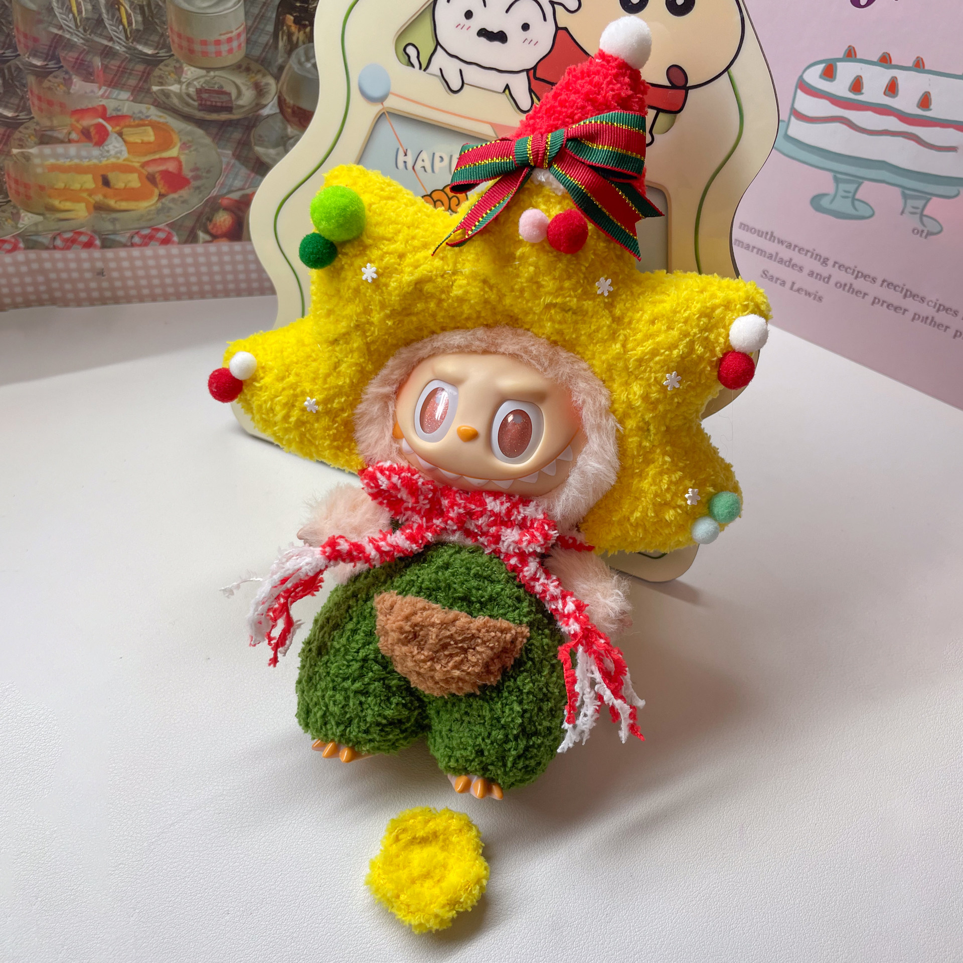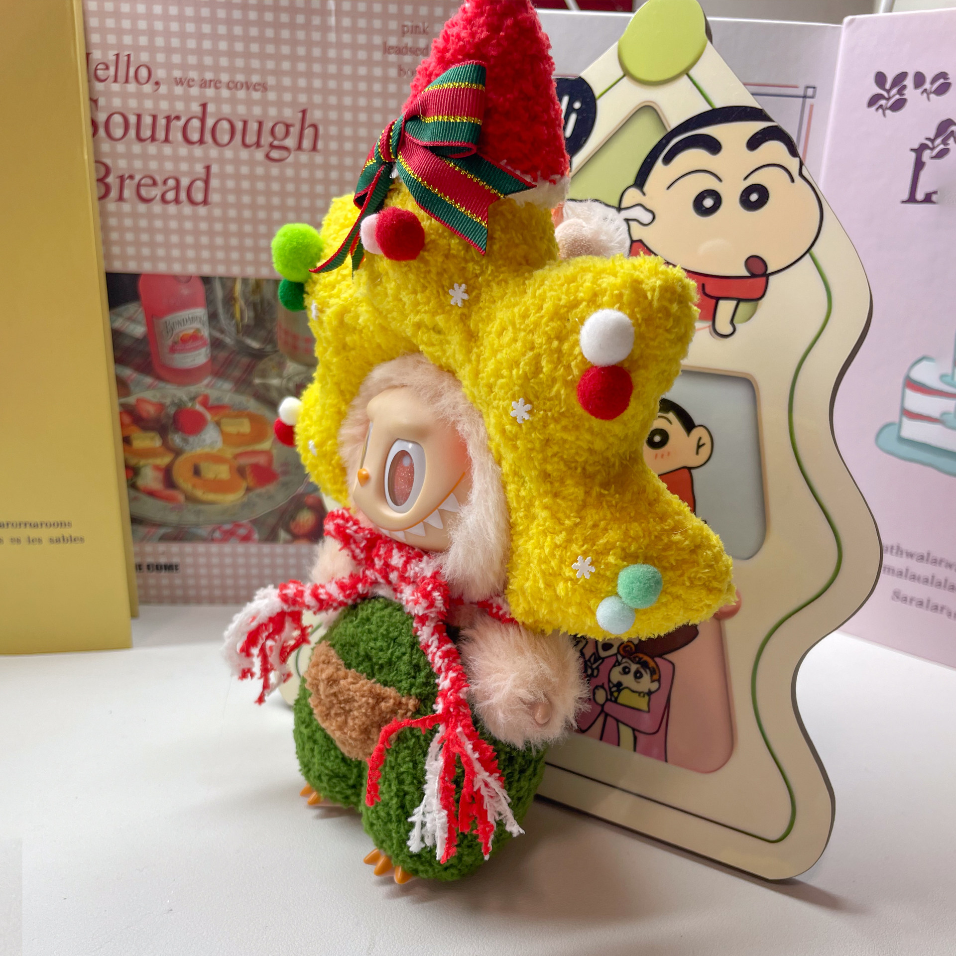 1234代拉布布圣诞帽mini圣诞围巾盲盒潮玩搪胶娃圣诞节装 饰娃衣