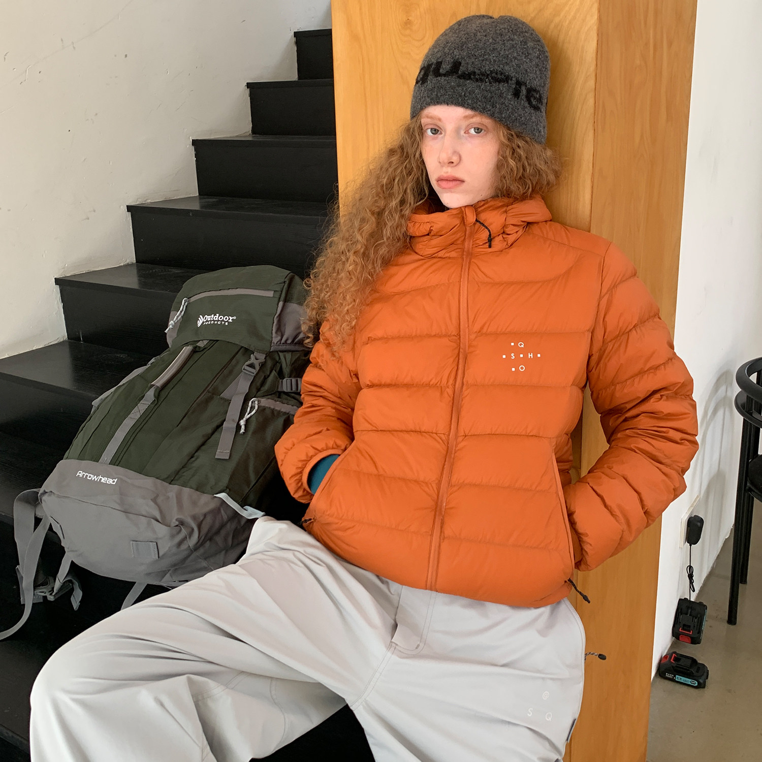 square houlest冬户外百搭90白鸭绒保暖连帽排骨内胆羽绒服外套女