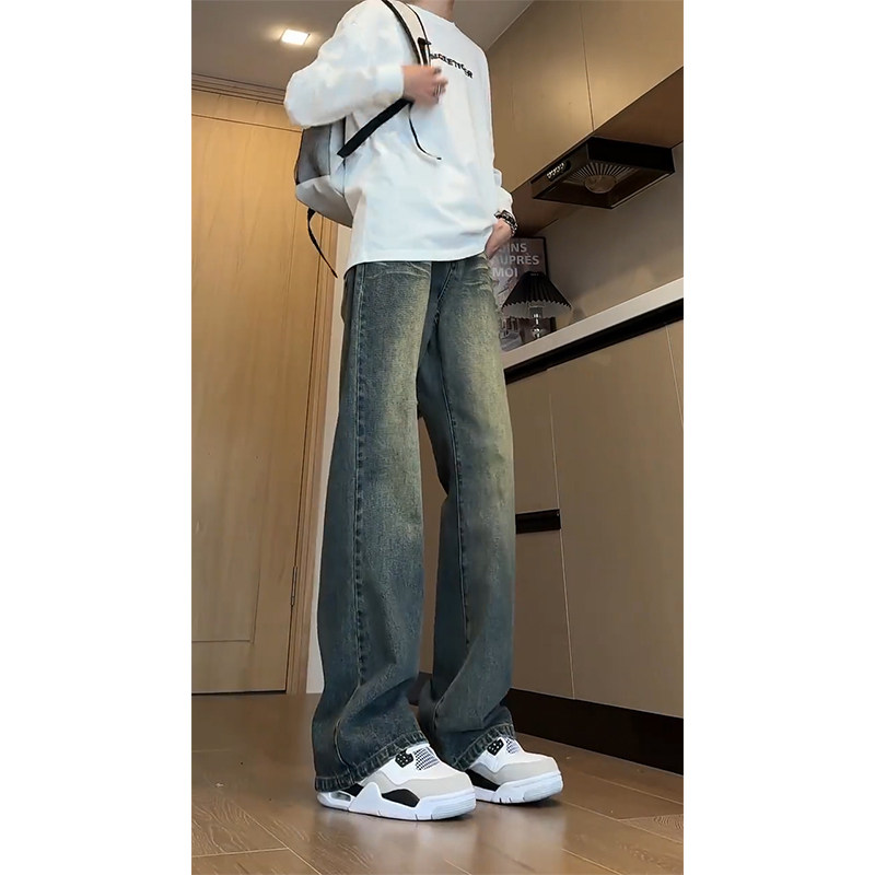 高腰直筒微喇叭裤 加长版 高街vibe修身 美式 男高个子显瘦弯刀 牛仔裤