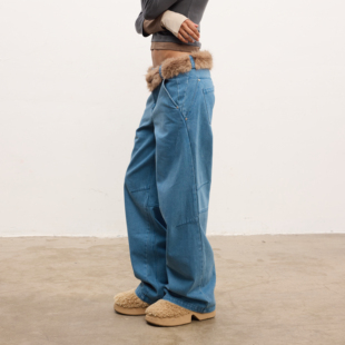 子女装 三福牛仔裤 复古领带腰绳宽松阔腿直筒裤 冬季 512988 2025新款