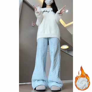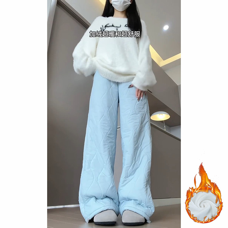加绒加厚防风显瘦羽绒裤 2025新款 女秋冬季 蓝色温柔风保暖菱格棉裤