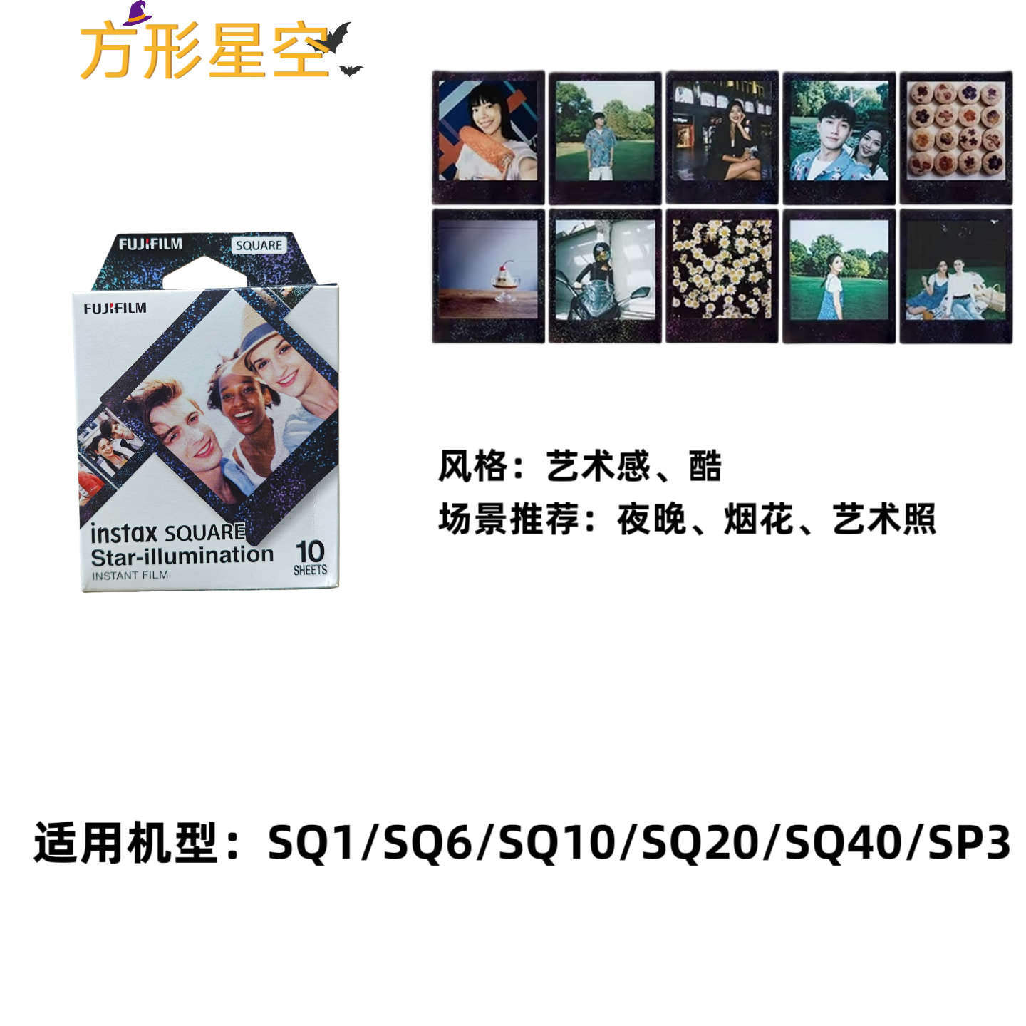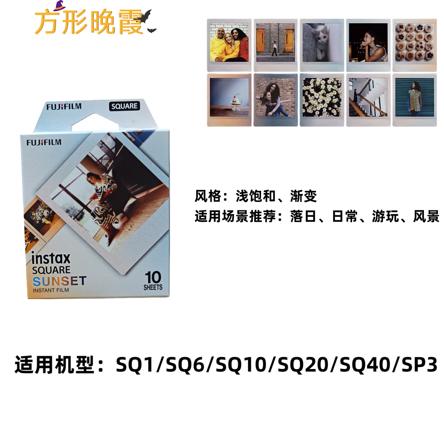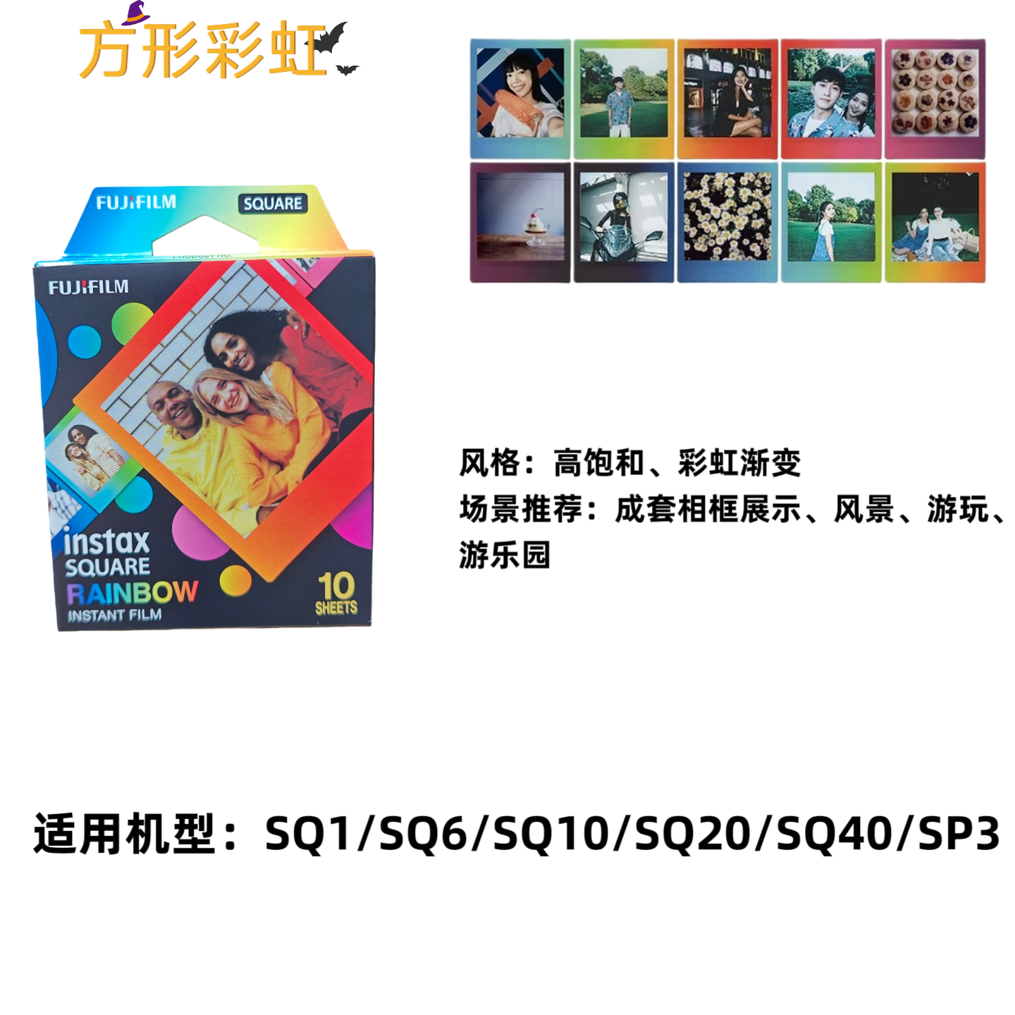富士拍立得方形相纸SQ系列通用4寸方形白边相纸彩虹相纸SQ10 SQ6