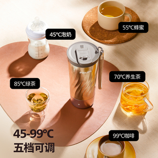 飞利浦便携式 电热杯纯钛钛水杯泡茶杯高端礼品礼盒钛杯烧水杯新款