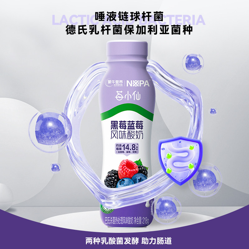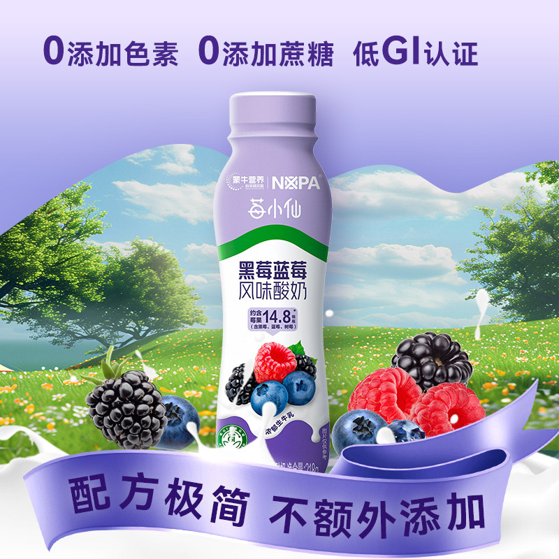 10瓶 黑莓蓝莓风味酸奶低GI认证零蔗糖焕轻218g 蒙牛NOPA出品