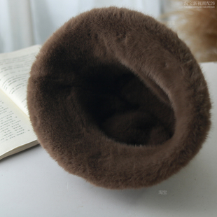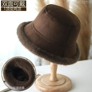 黑色羊羔毛绒渔夫帽女秋冬保暖水桶帽显脸小毛线帽子圆顶2025新款