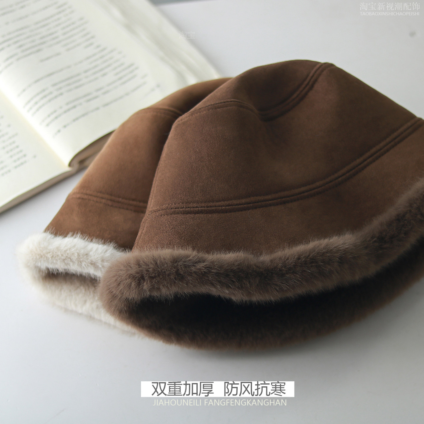 蕉下渔夫帽气绒保暖双面防晒秋冬季 遮阳毛绒防风女士户外帽子 新款