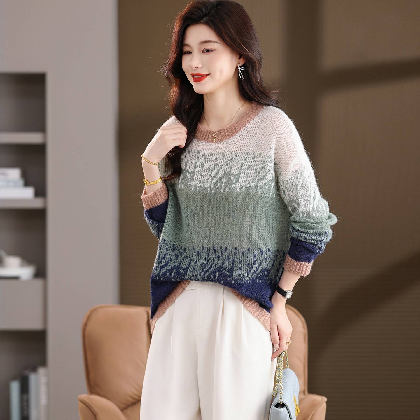 显瘦上衣 松弛感打底针织衫 慵懒风撞色薄款 毛衣女宽松外穿春秋新款