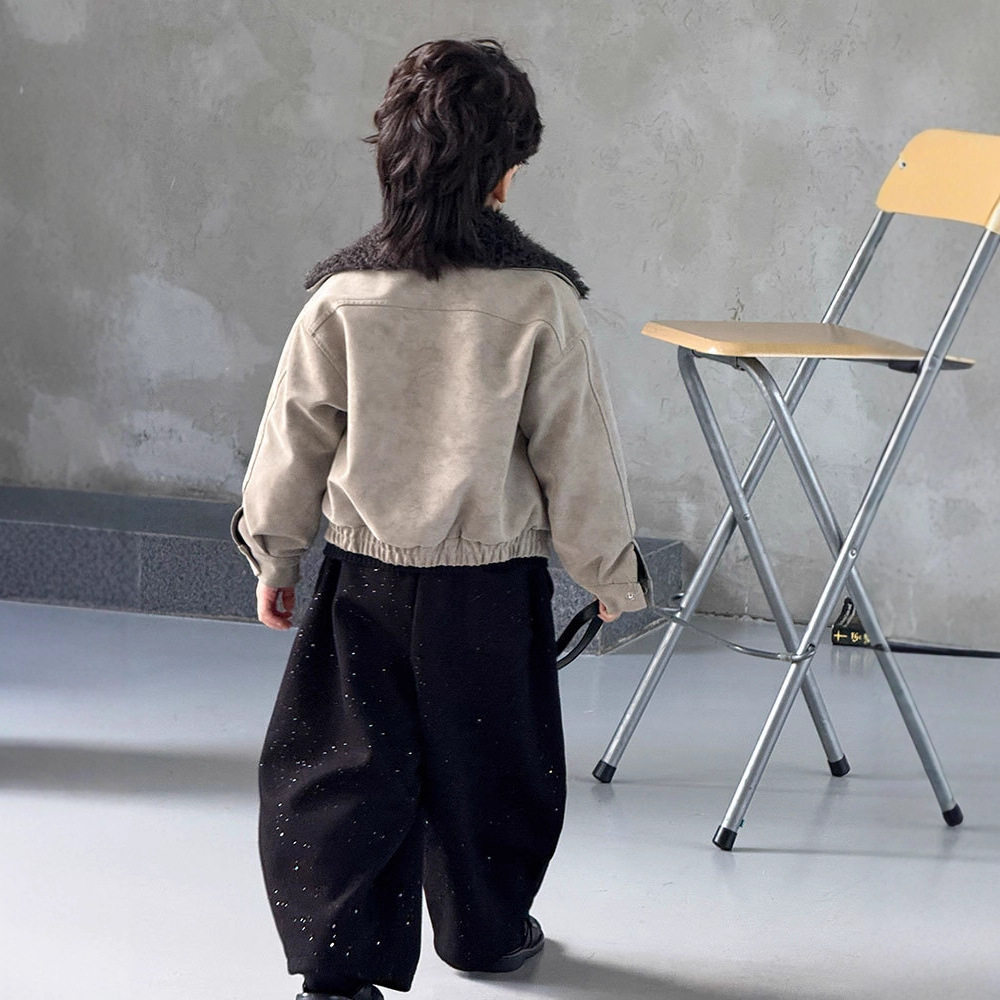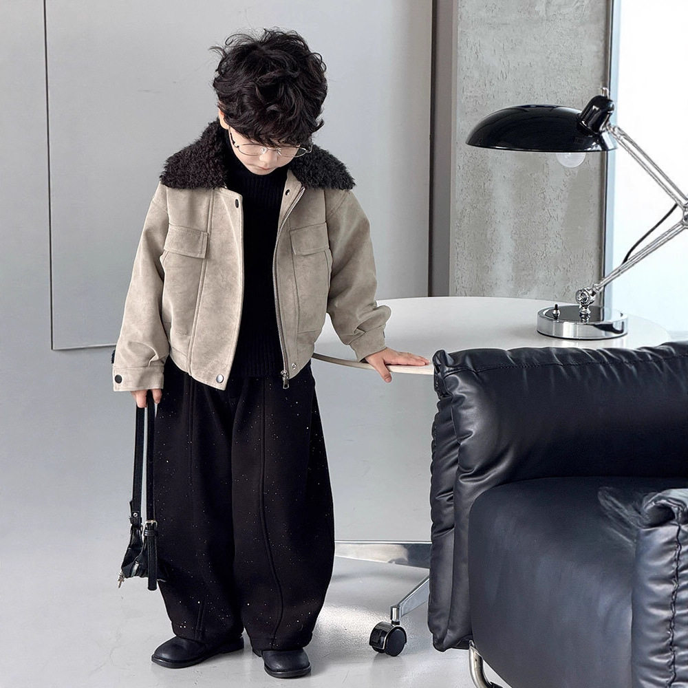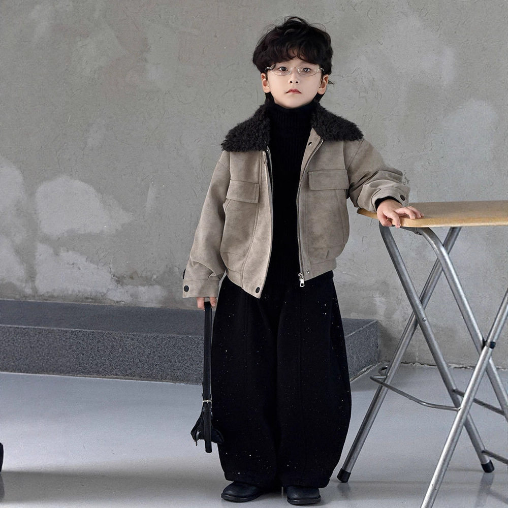 痞帅童装 帅气加厚保暖毛领夹克外套男孩冬季 2025新款 儿童秋冬套装