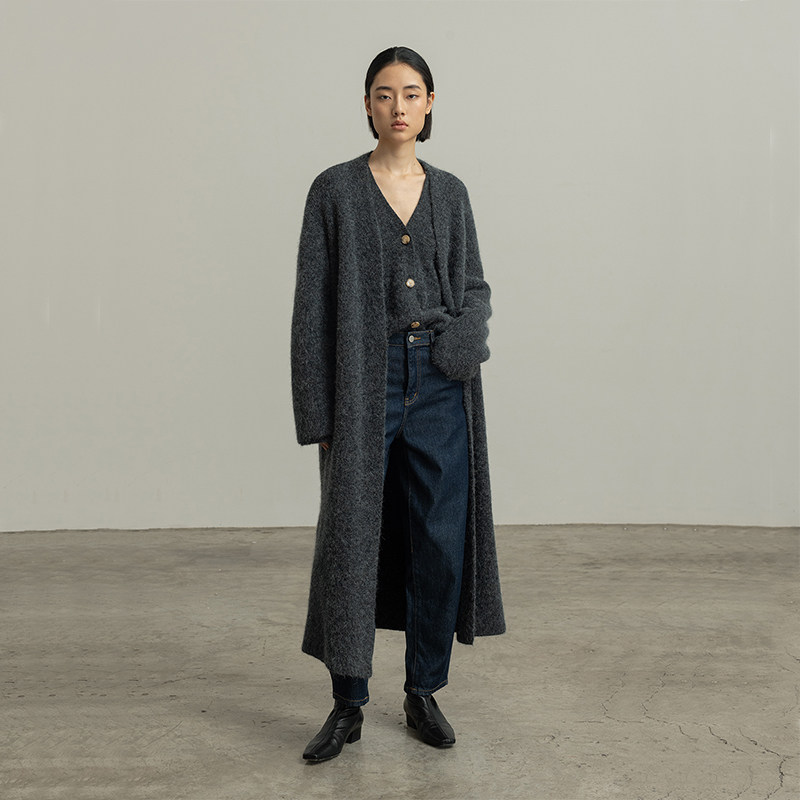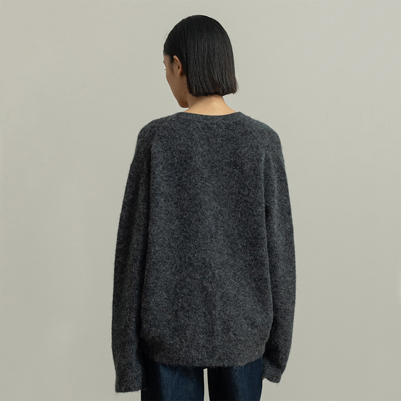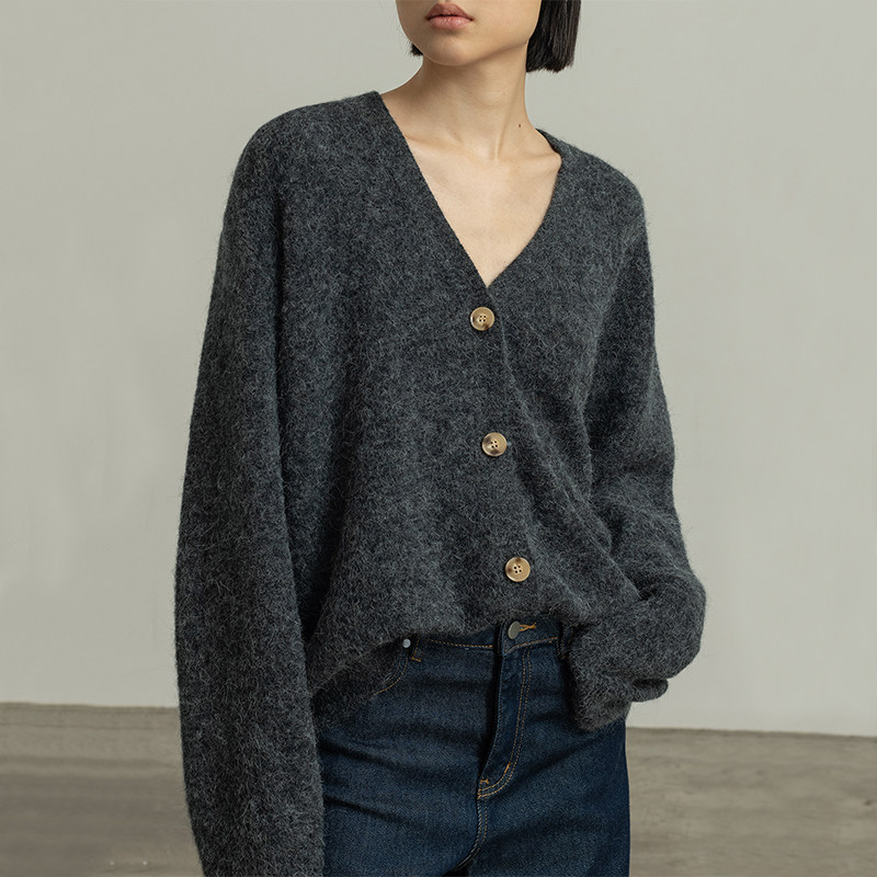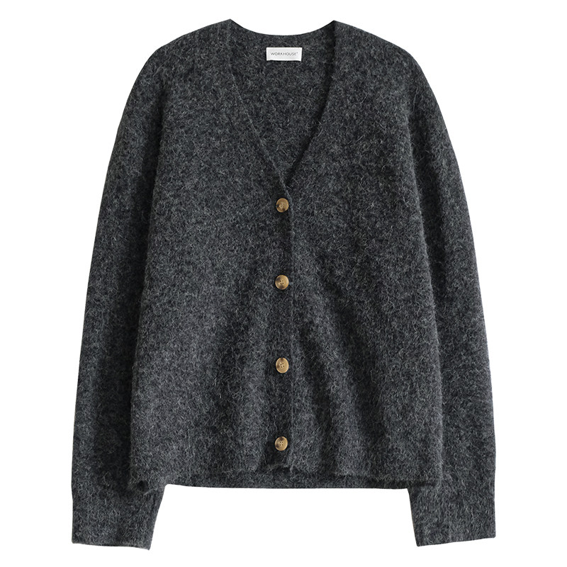 322WORKHOUSE羊驼毛加厚针织外套女2025新款 A989 秋冬宽松毛衣开衫