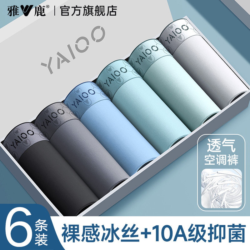 2026新款 雅鹿男士 衩男生男款 头透气冰丝抗菌纯棉四角平角短裤 内裤