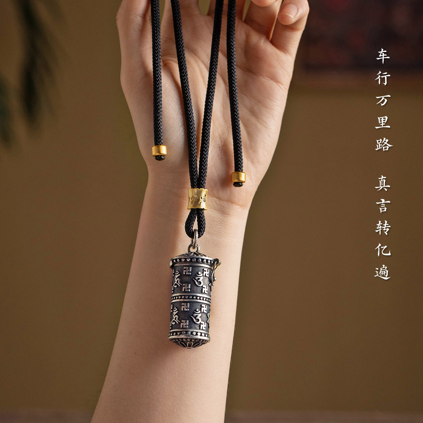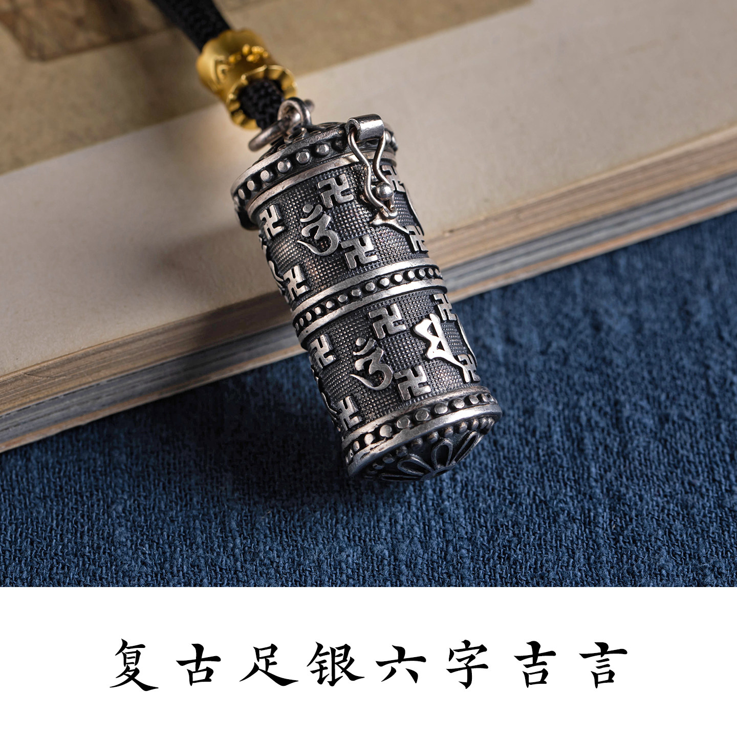 足银汽车挂件六字真言嘎乌盒后视镜挂饰车载饰品创意新款 马年男士