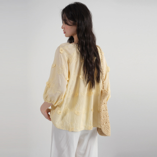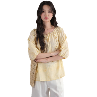 女装 衬衫 2026夏装 设计感胖MM提花蝴蝶结刺绣七分袖 新款 蓝若水大码