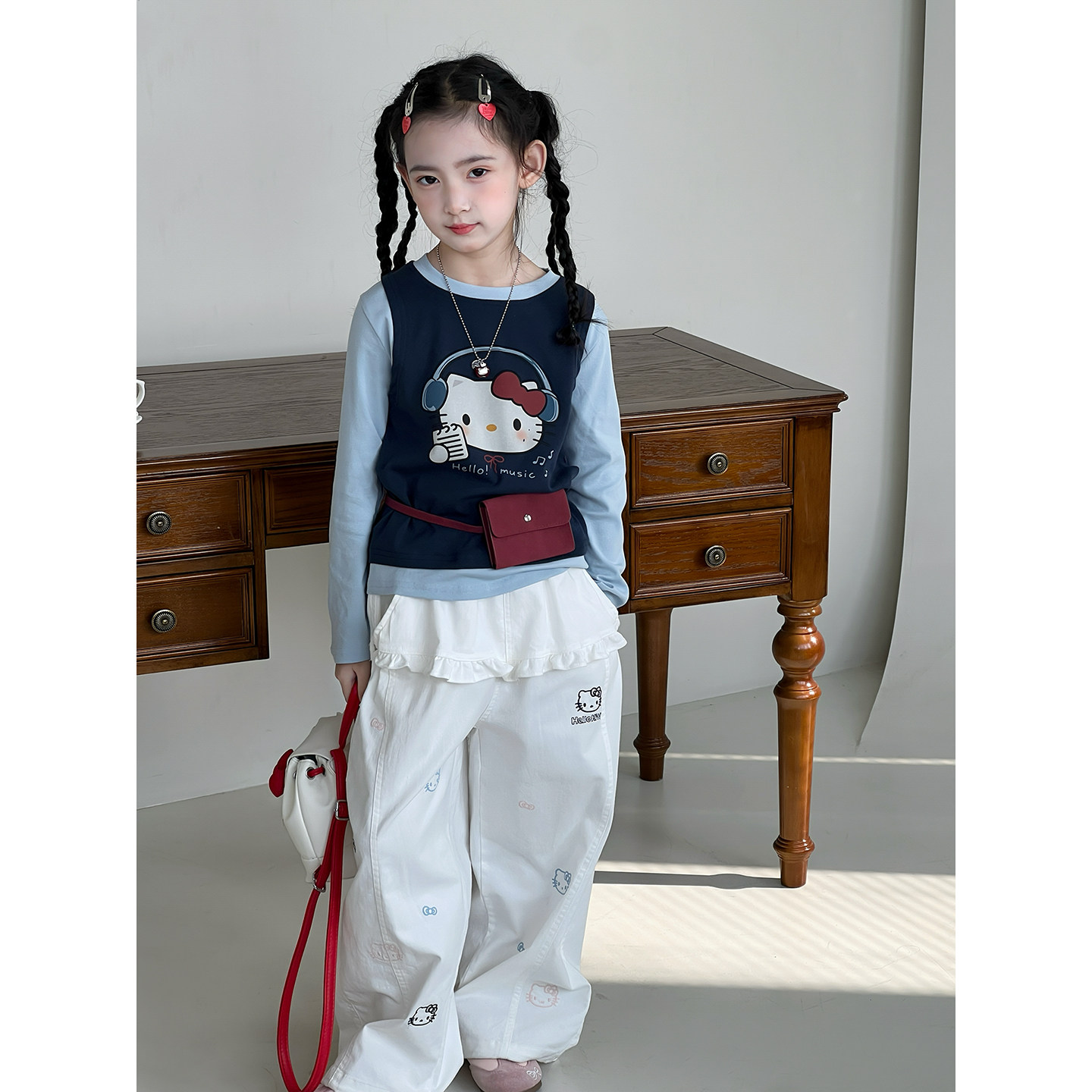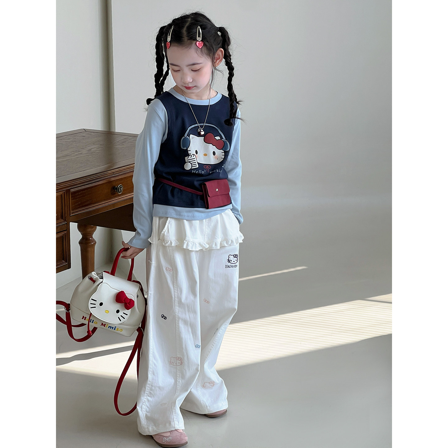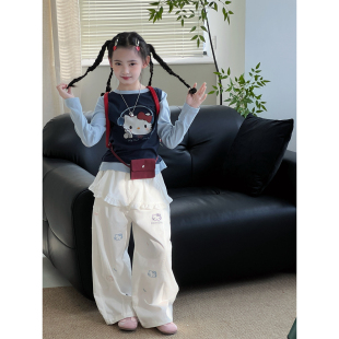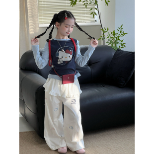 儿童拼接裙裤 新款 初中生阔腿裤 洋气韩版 女童裤 休闲长裤 子2026春季