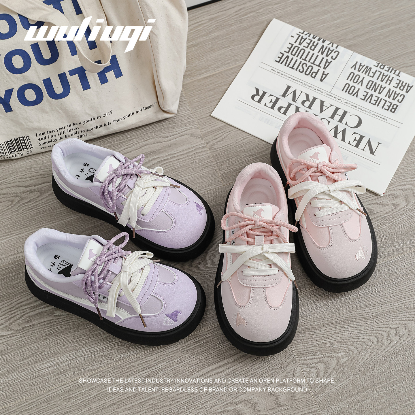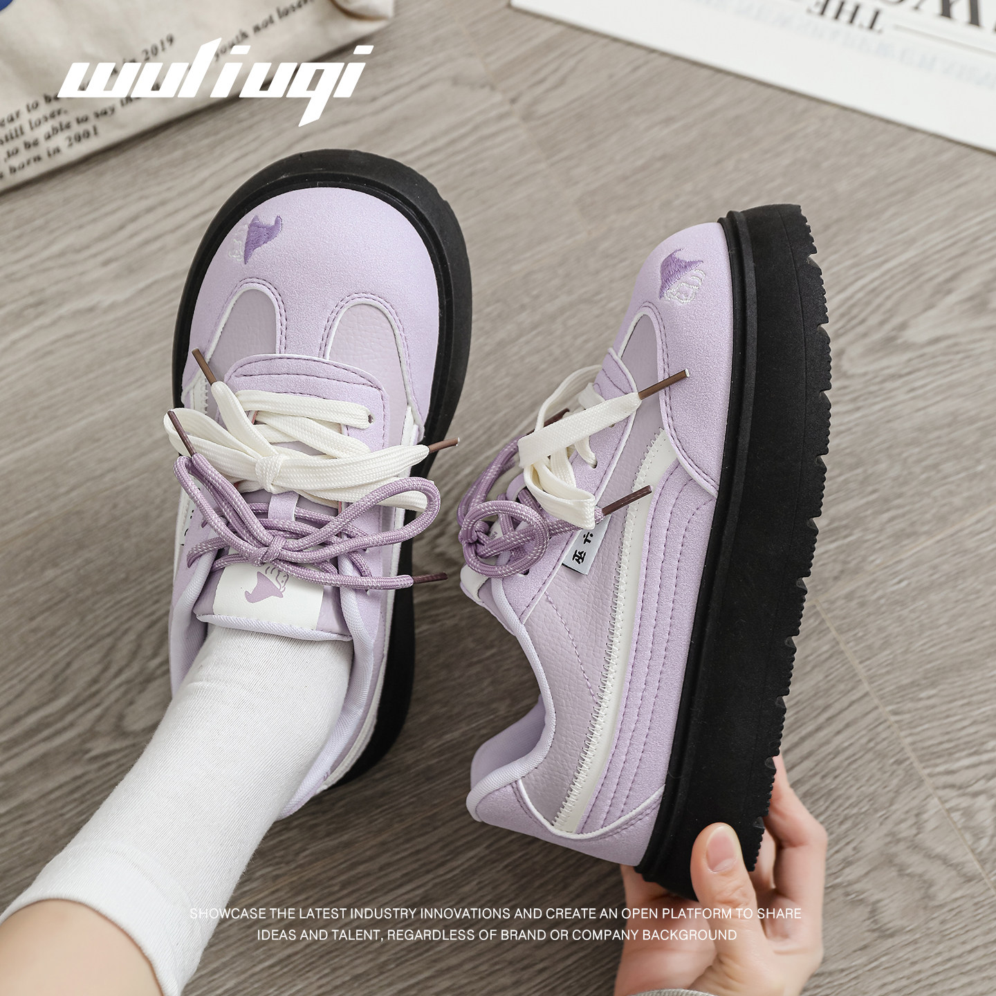 百搭小白鞋 巫六七厚底紫色增高板鞋 低帮显脚小女鞋 新款 2026春季
