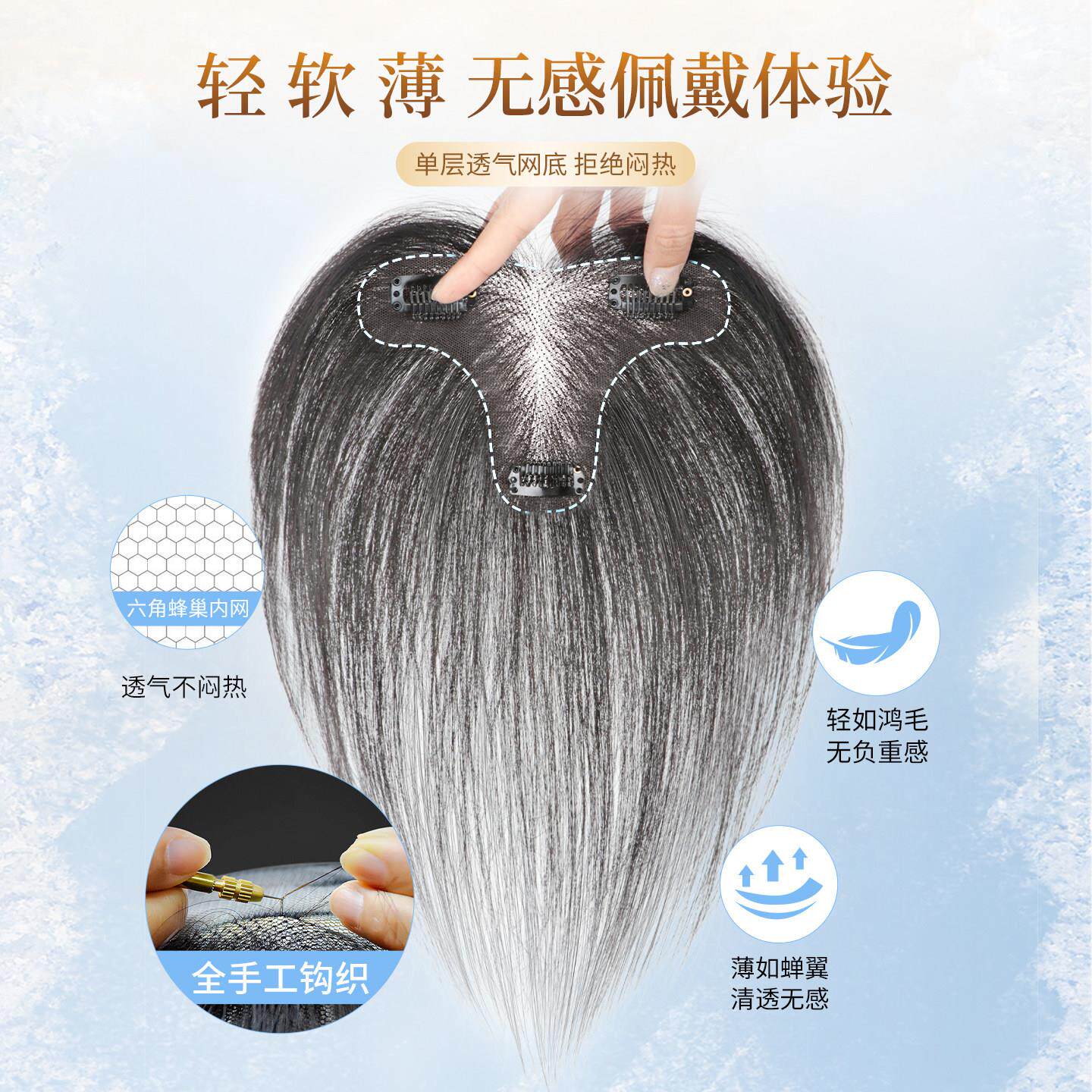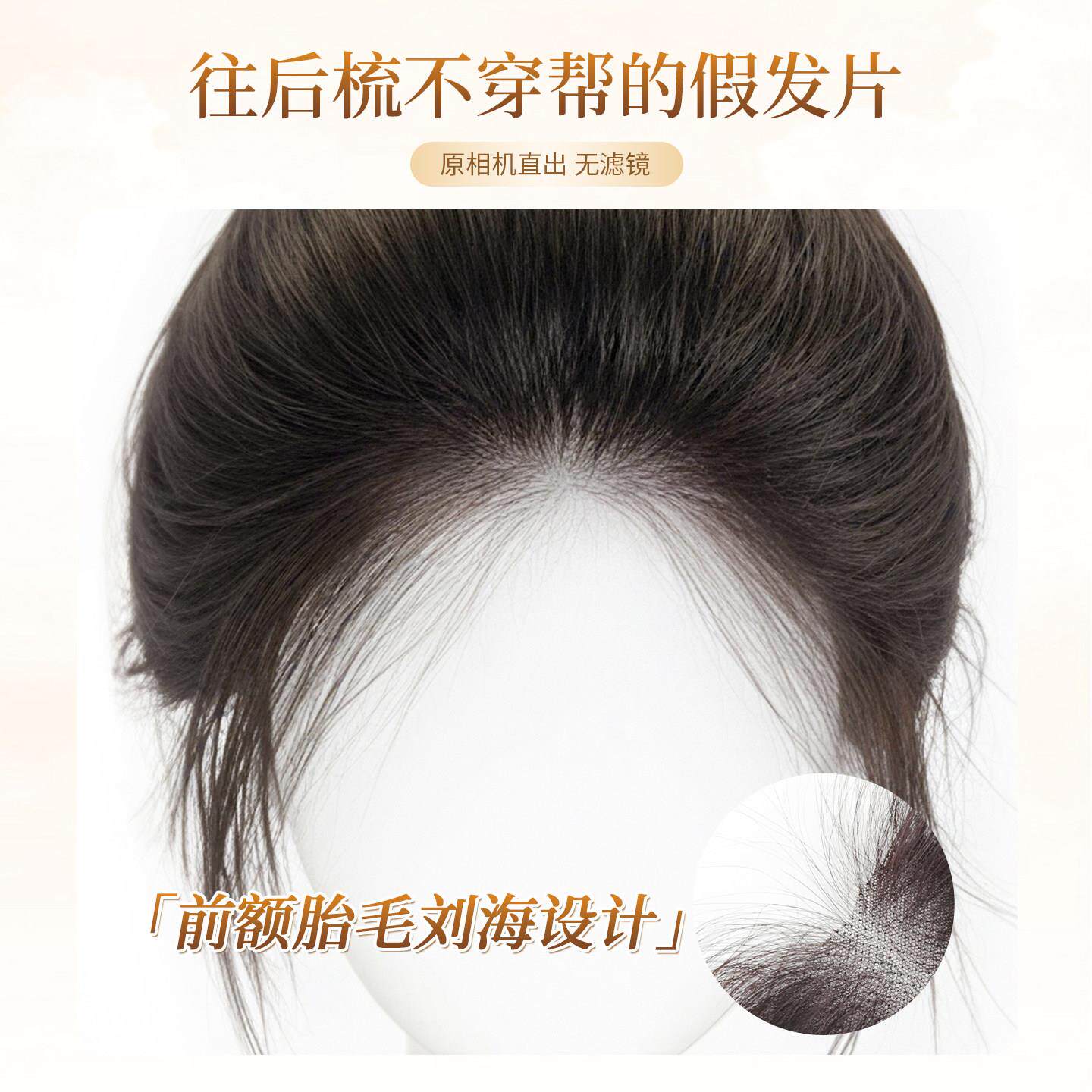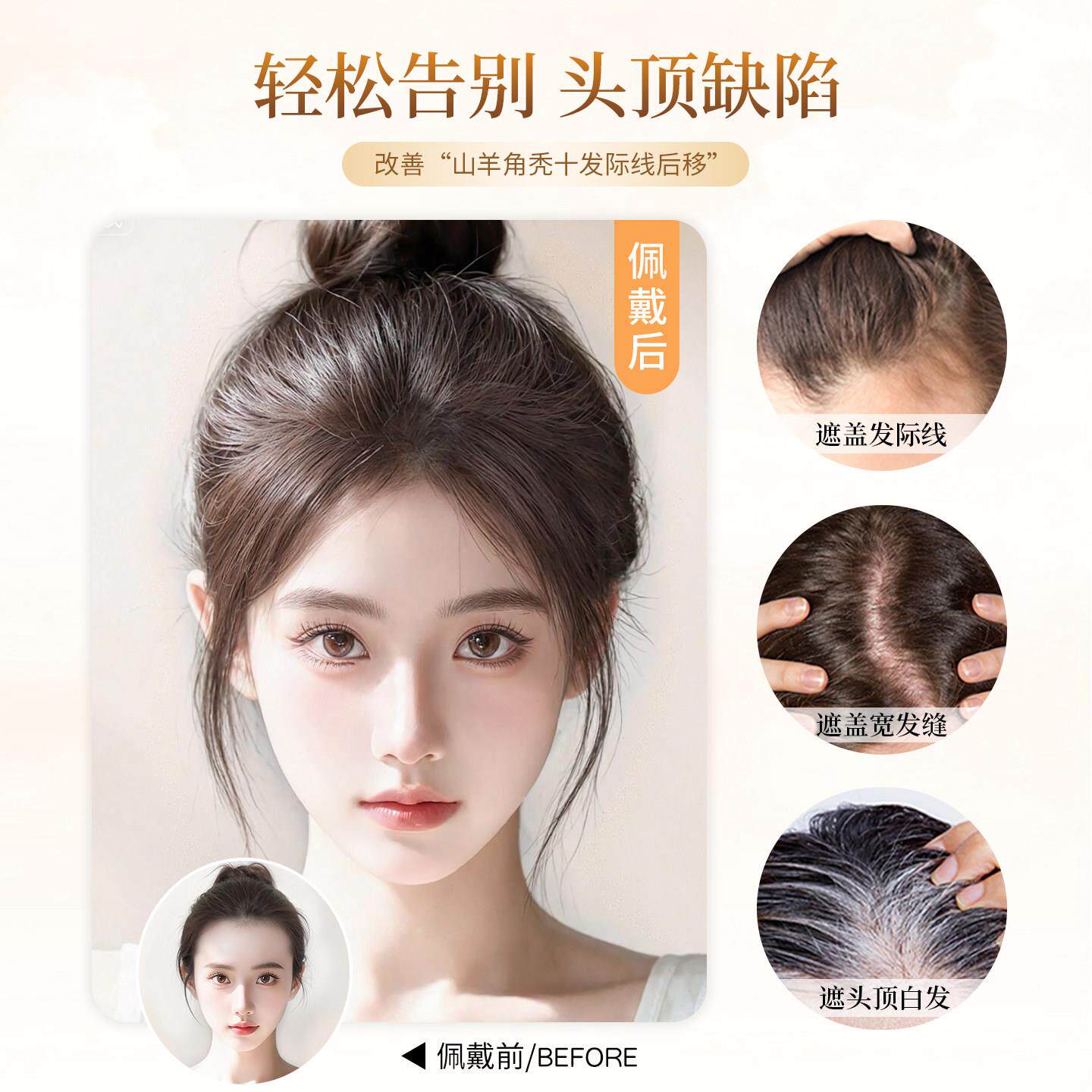 全真发胎毛刘海假发女片头顶鬓角补发量蓬松无痕发际线贴前额八字