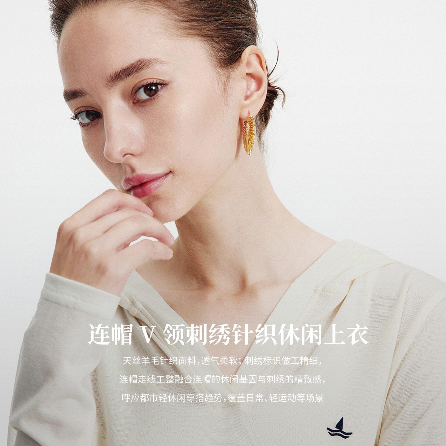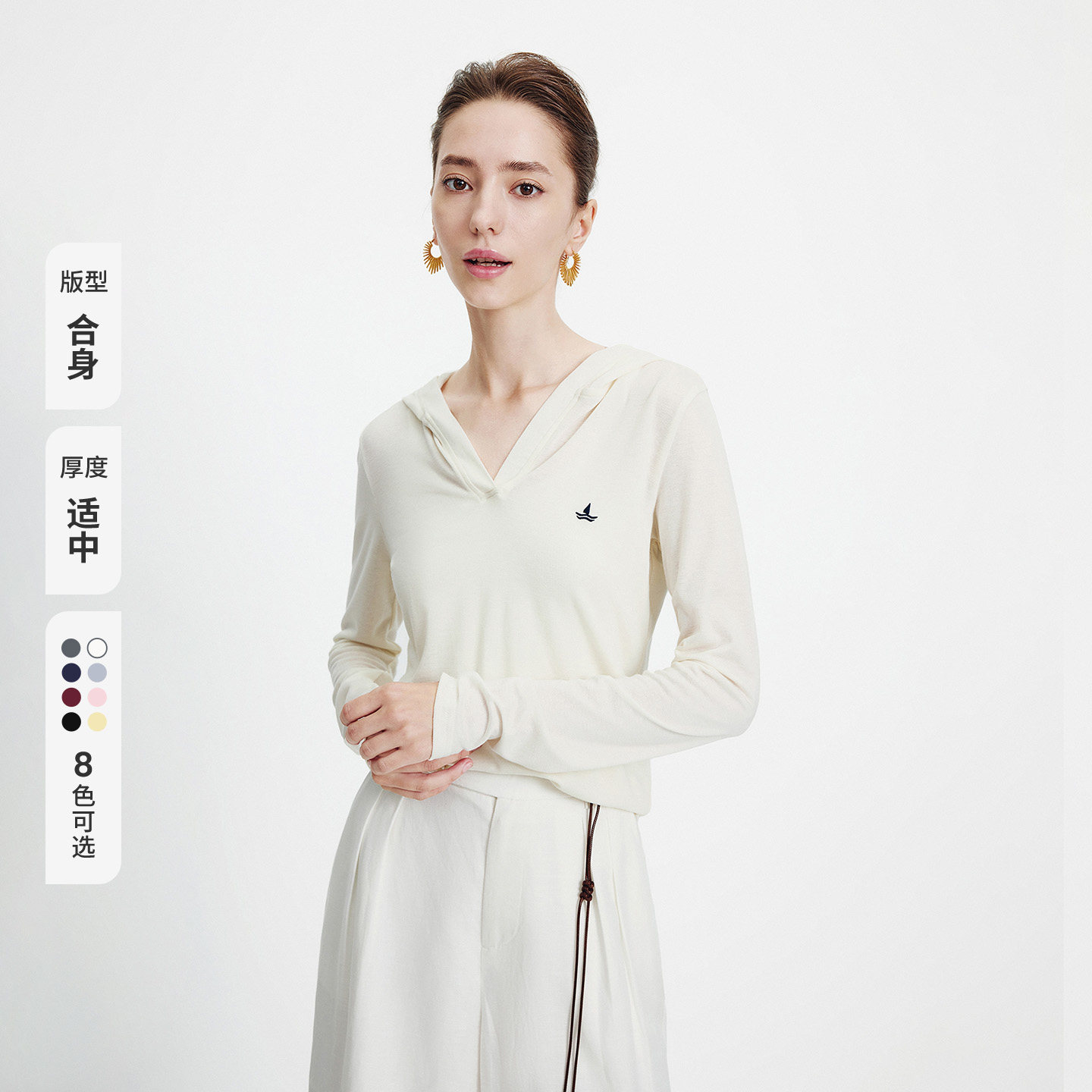 百搭连帽打底衫 Navigare意大利小帆船白色休闲长袖 T恤女2026夏季