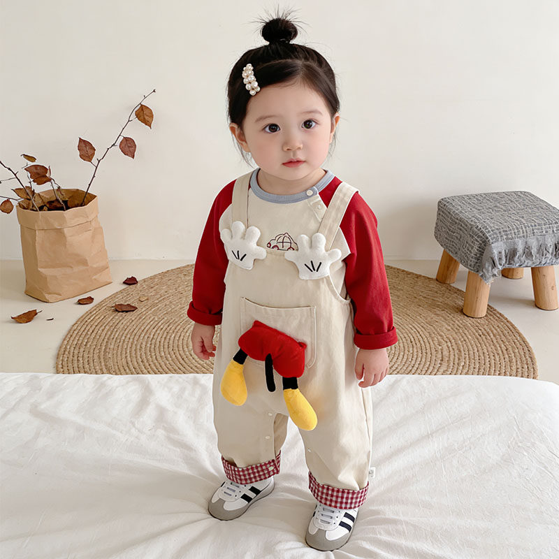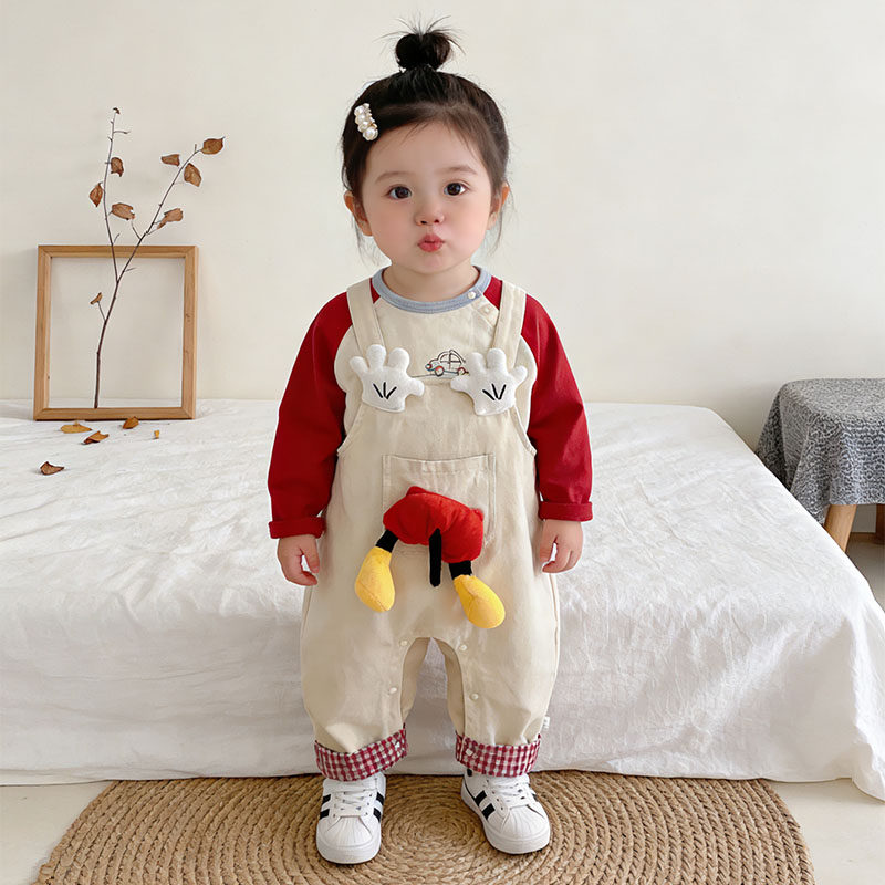 婴儿衣服春秋套装 分体两件套洋气女宝宝周岁礼服 小月龄穿搭背带裤