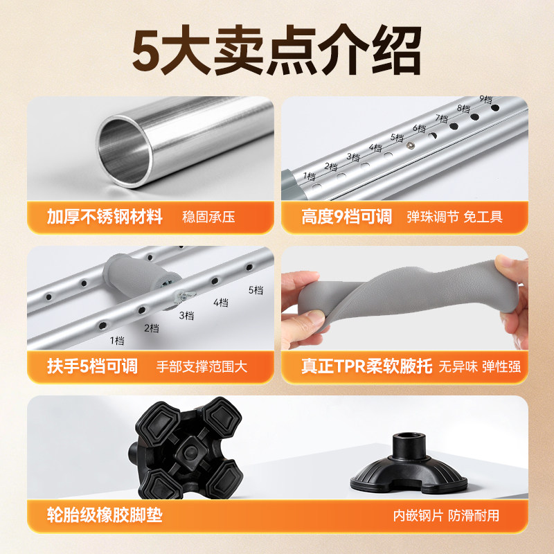 可孚腋下拐骨折拐杖康复走路防滑双拐轻便专用拐棍医用行走助行器