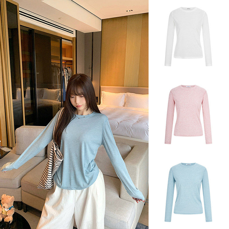 宽松圆领上衣 t恤女防晒罩衫 MosesQueen魔西女王白色微透薄款 长袖