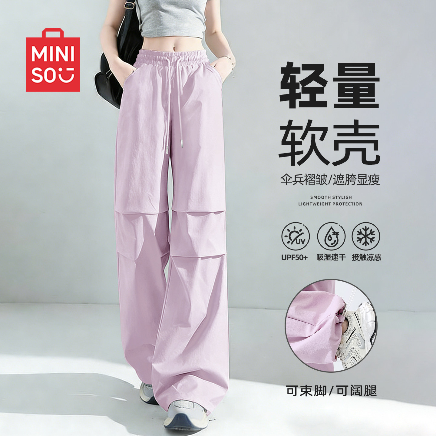 女款 2026新款 春季 MINISO 小个子运动阔腿裤 裤 冲锋裤 名创优品工装