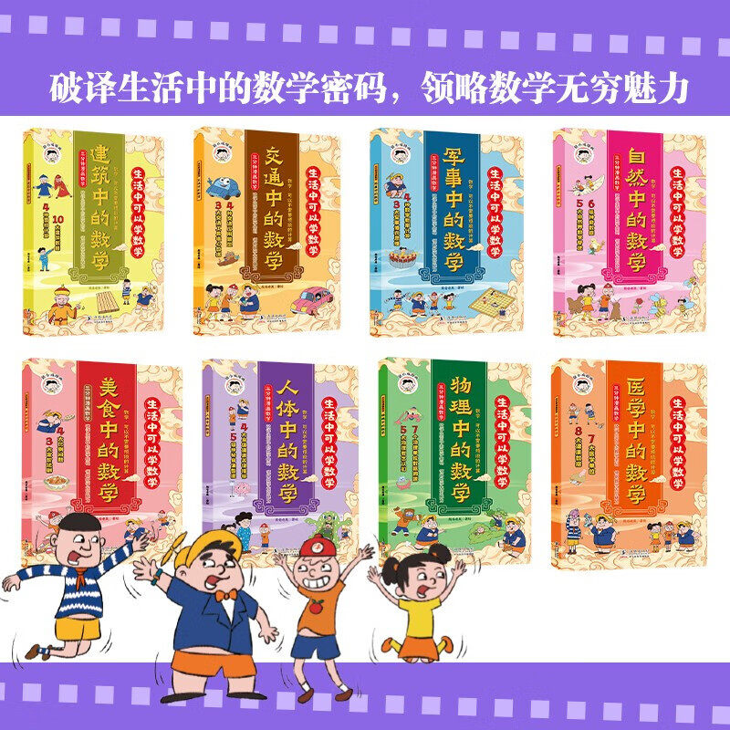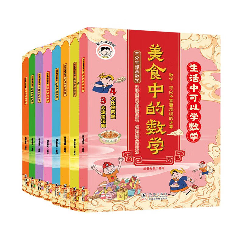 数学猪小戒漫画4大比例问 美食建筑人体交通自然军事物理医学中 三分钟漫画数学全8册 生活中可以学数学