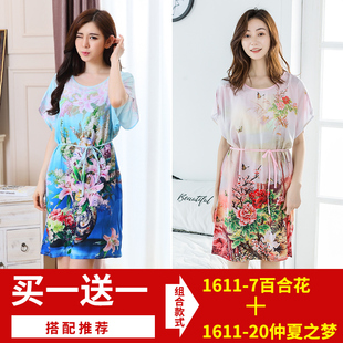 长裙绵绸睡衣宽松大码 睡裙女夏薄款 家居服连衣裙 中年妈妈短袖 夏季