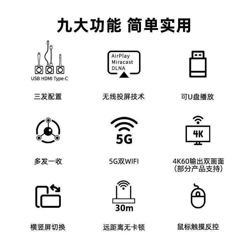 宝疆无线投屏器一键联电脑HDMI平板4K60HZ同步传屏器VS100 VS200