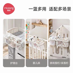 曼龙婴儿床边挂篮置物架宝宝尿不湿收纳挂袋尿布台围栏床头收纳盒