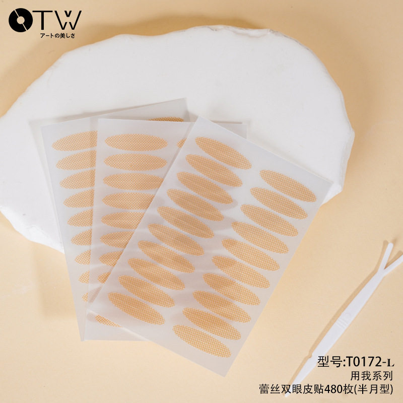 otw新款 月牙型无痕蕾丝自然隐形橄榄分段肿眼泡内双网纹双眼皮贴
