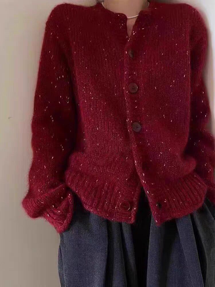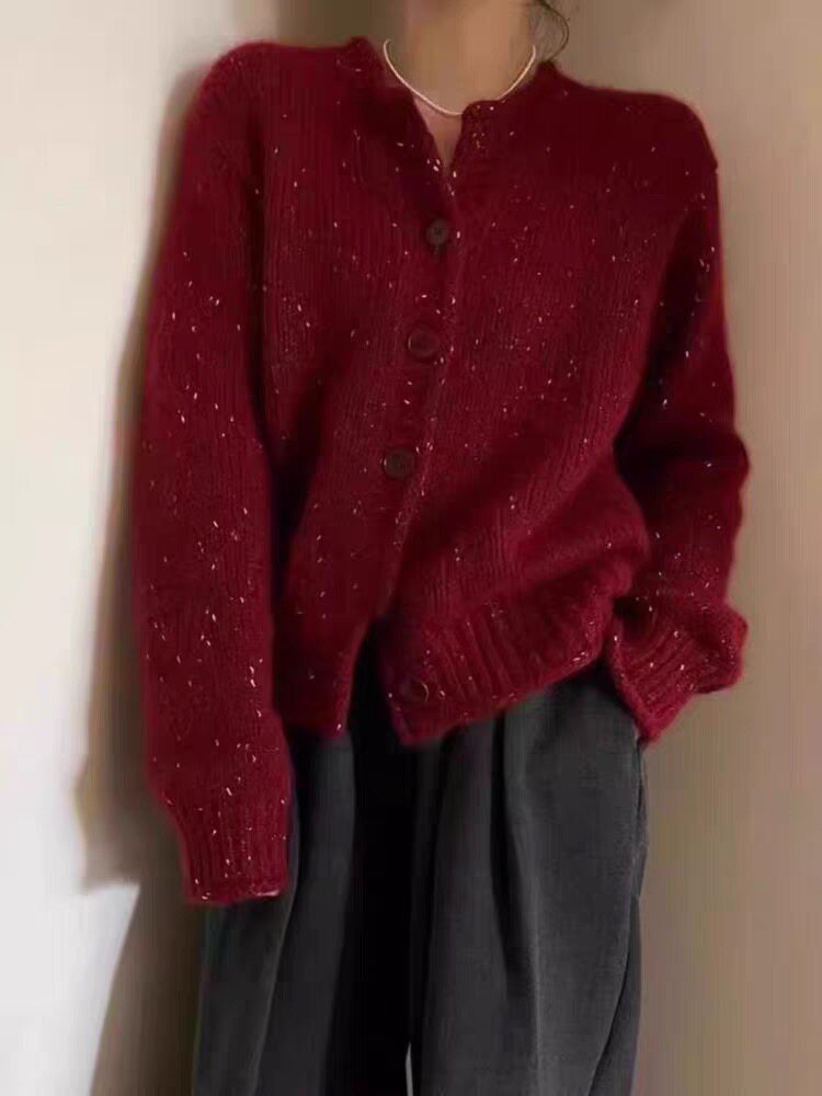 重工亮片红色针织开衫 高级感显瘦百搭毛衣外套上衣 女2025秋冬新款