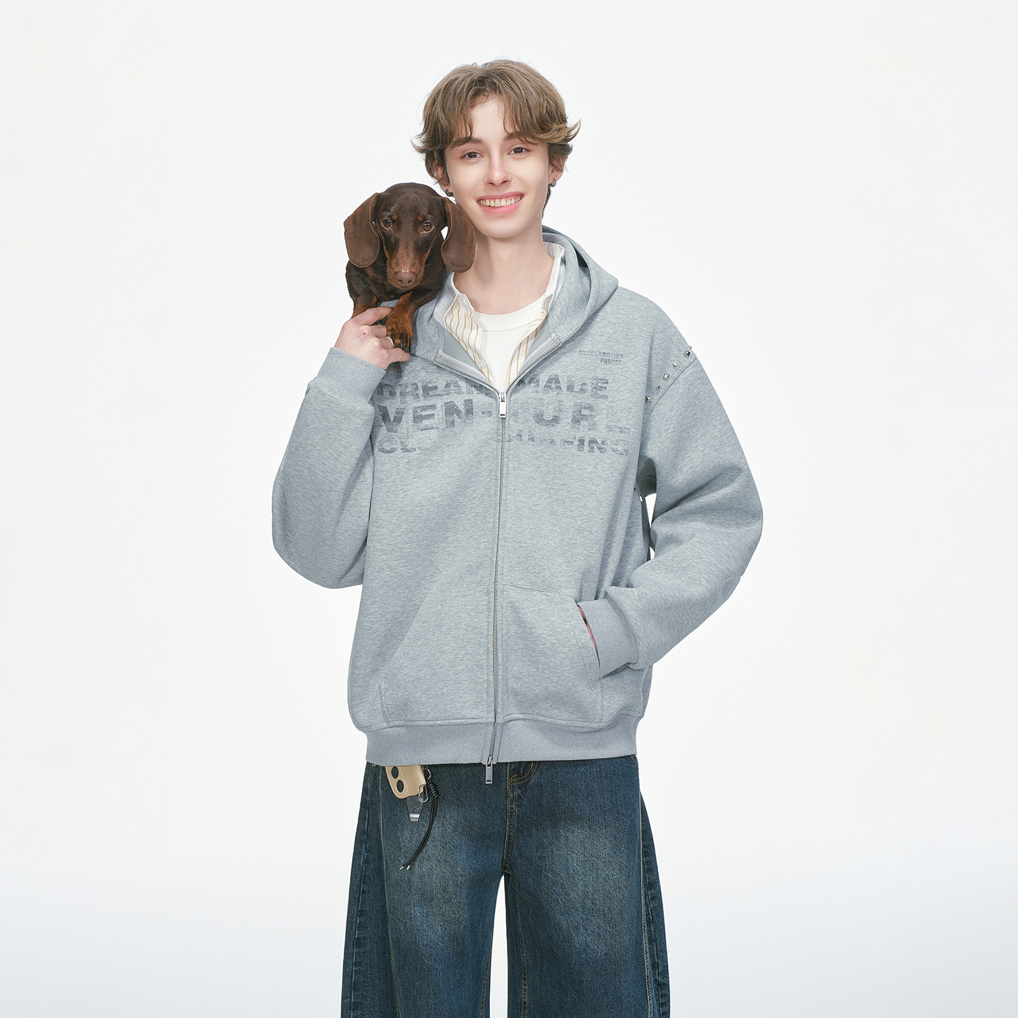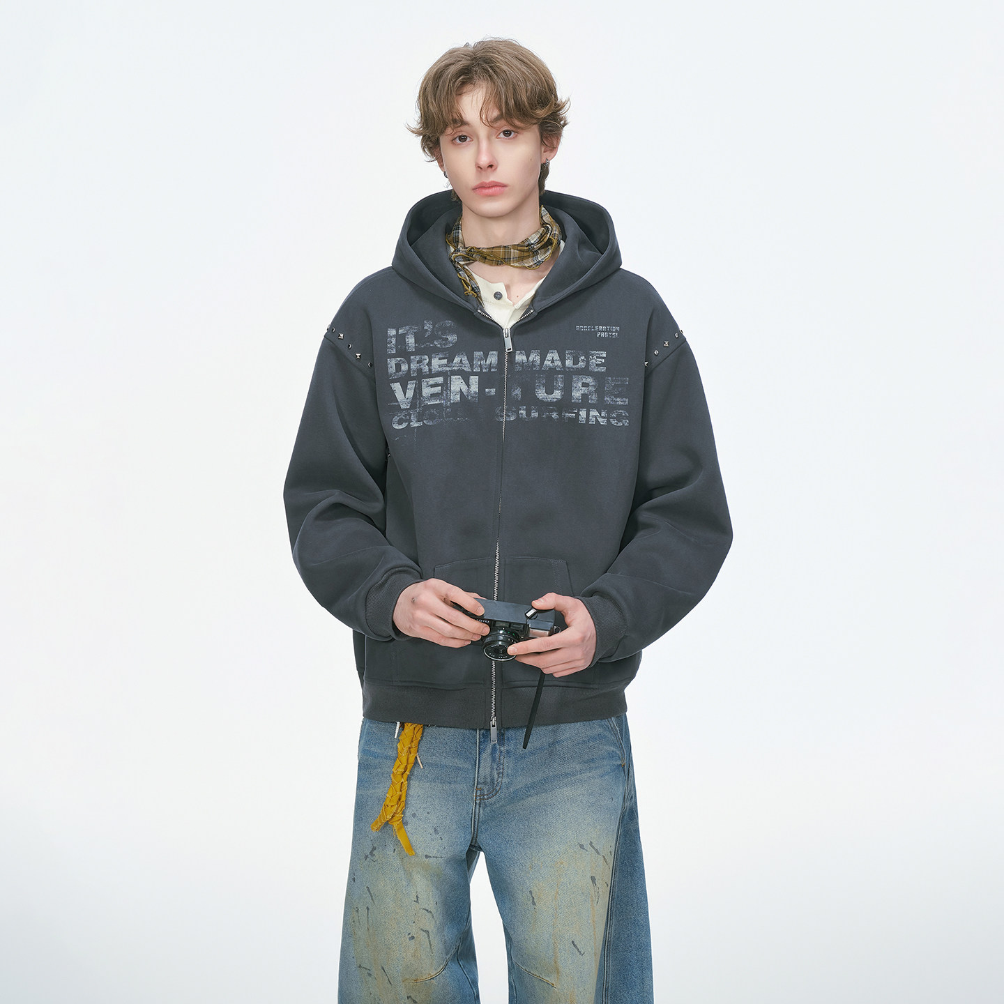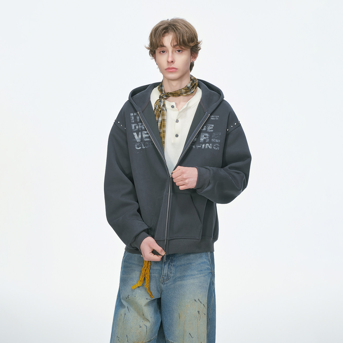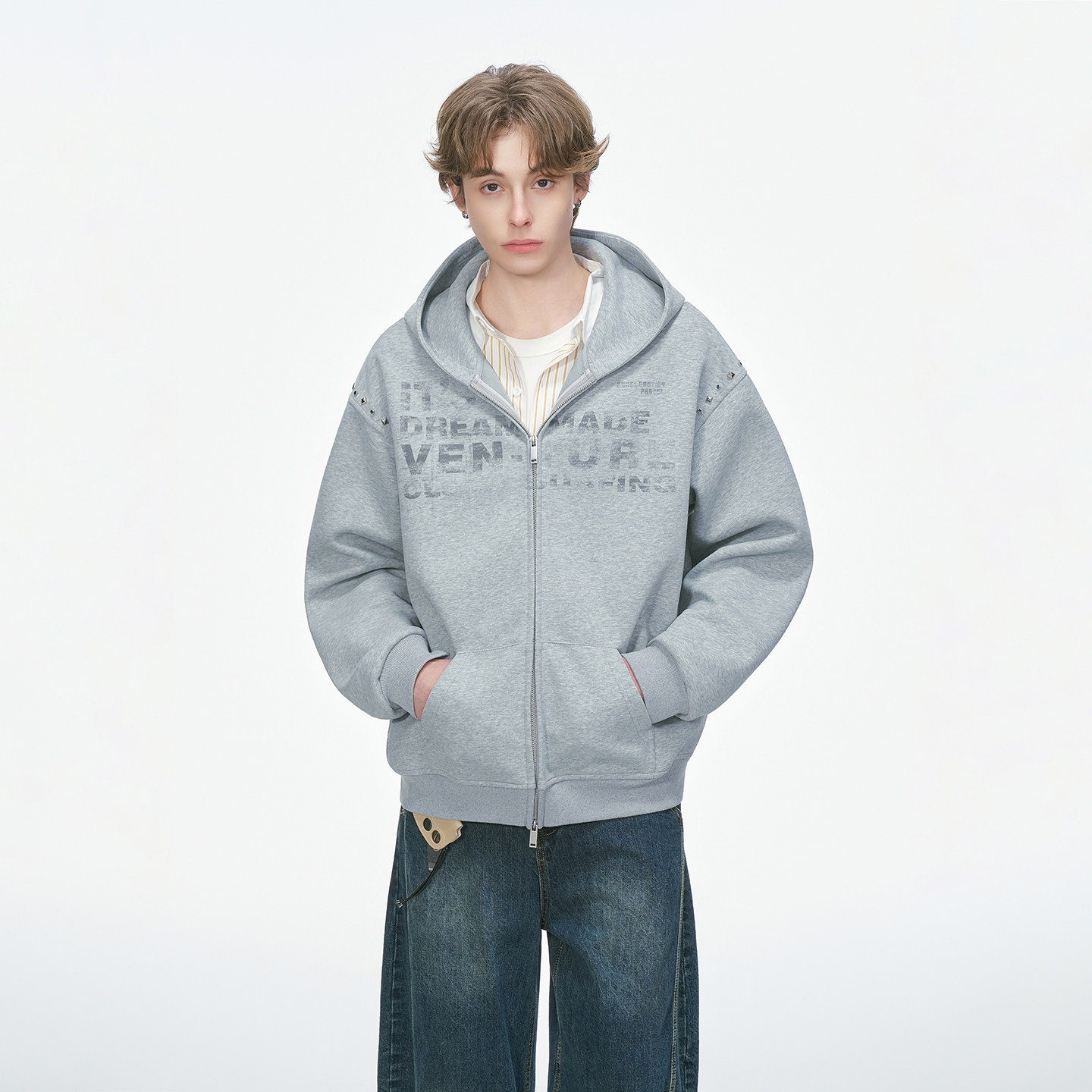 卫衣男春秋季 设计感铆钉开衫 重磅休闲男生连帽外套 made美式 Dream
