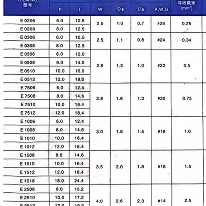 E2508 VE0508针形压线冷压端子 E1508 E7508 E0508管型接线 E1008