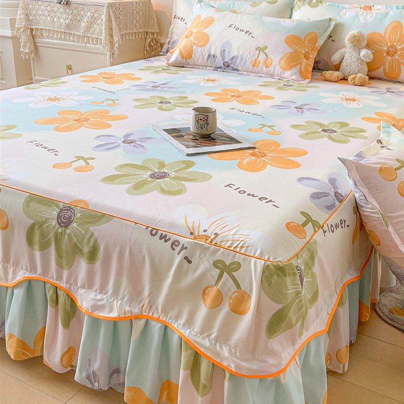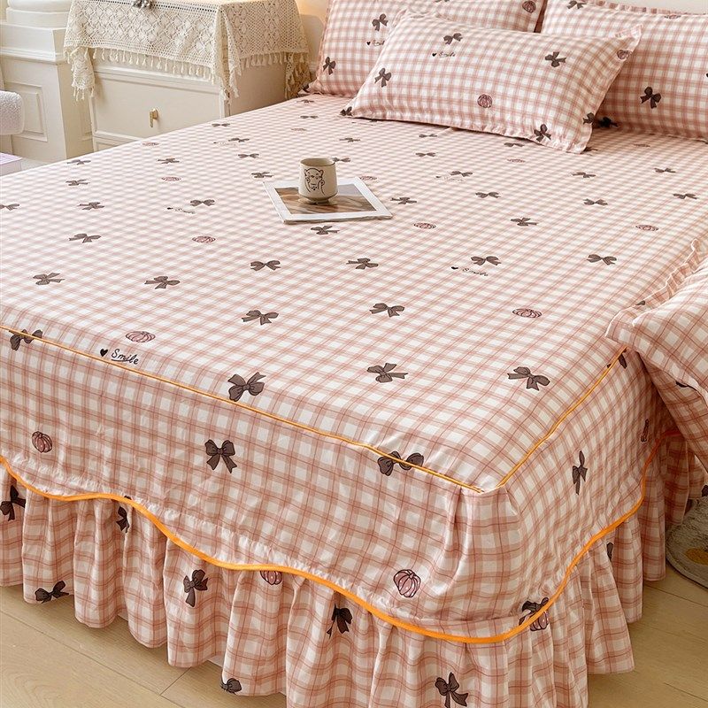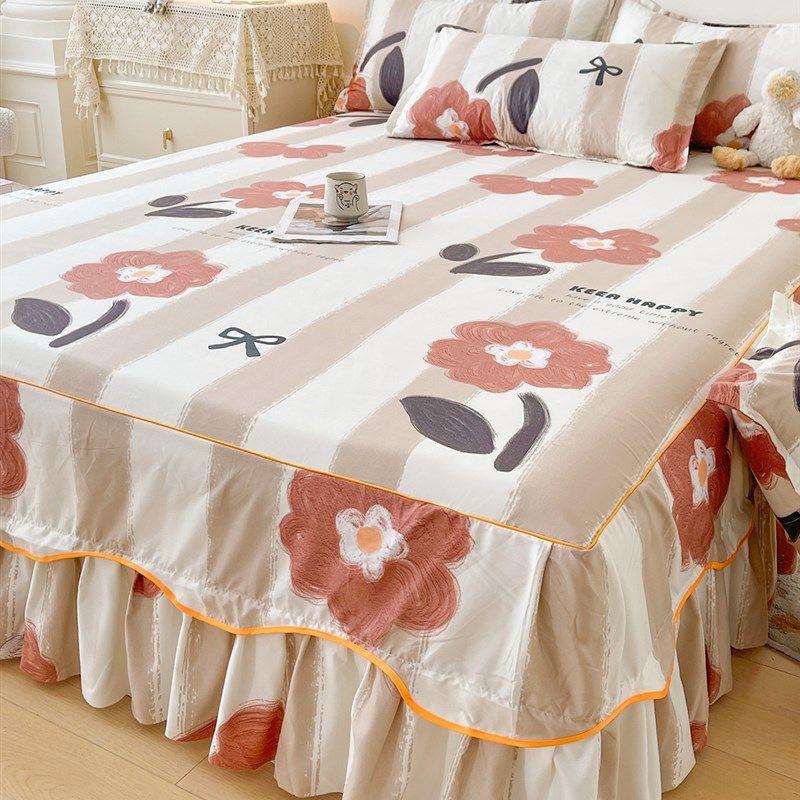 水洗棉质床单单片四季 蕾 通用棉质床单三件套裙下摆盖丑陋公主风格
