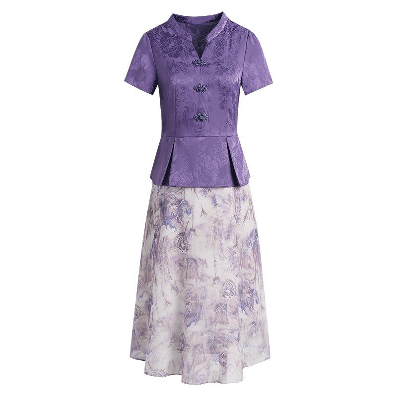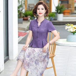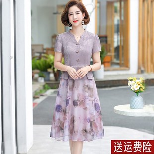 高贵气质中老年夏装 雪纺连衣裙2024年新款 两件套裙子 短袖 妈妈夏装