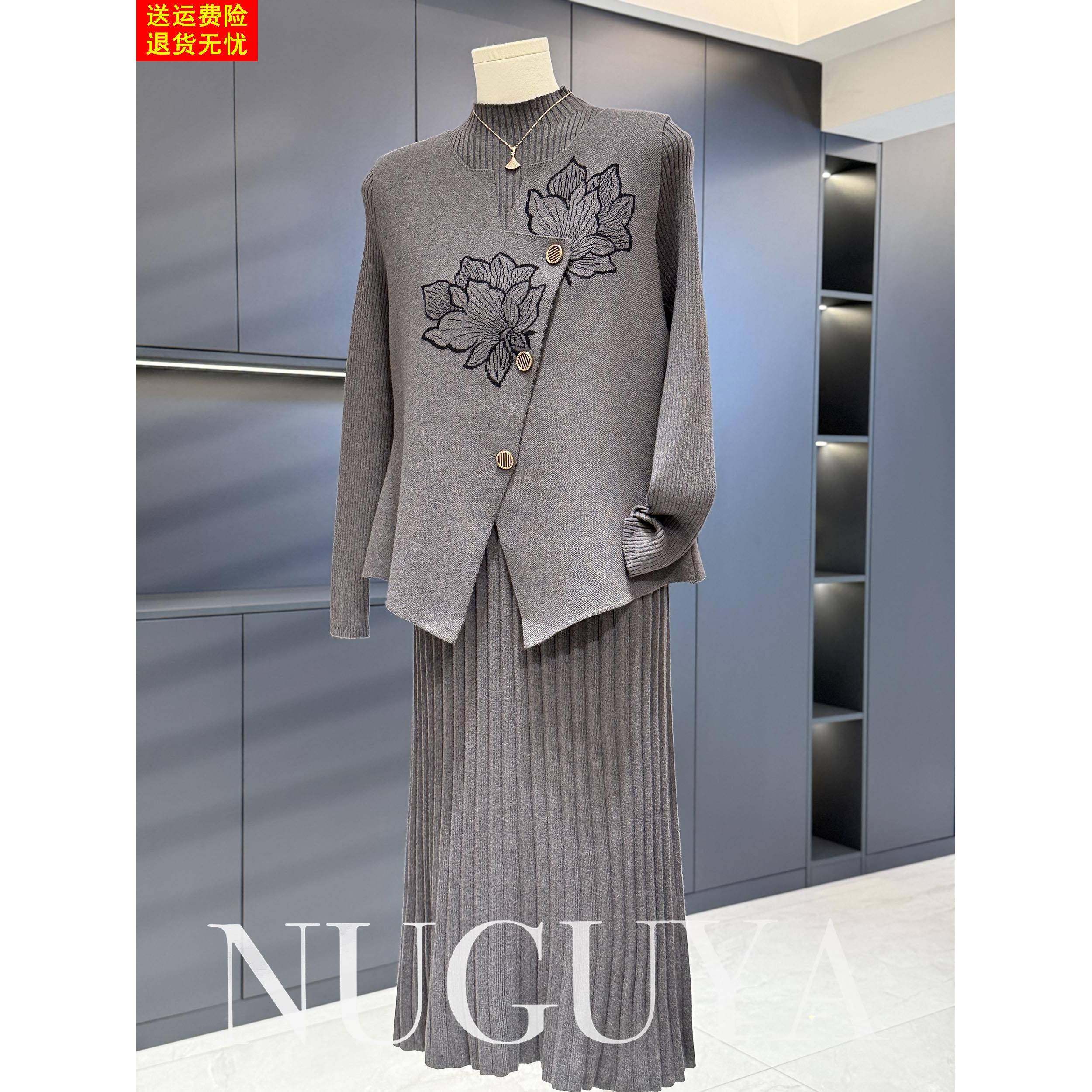 加绒加厚毛衣妈妈冬装 中老年人女装 保暖内搭 假两件针织衫 2025新款