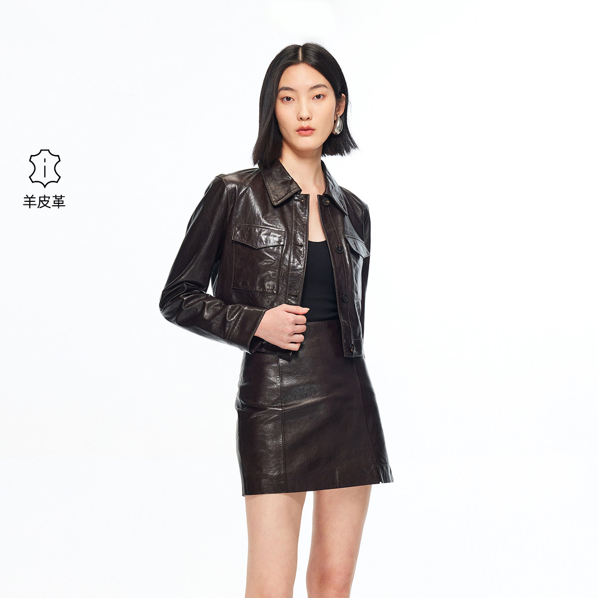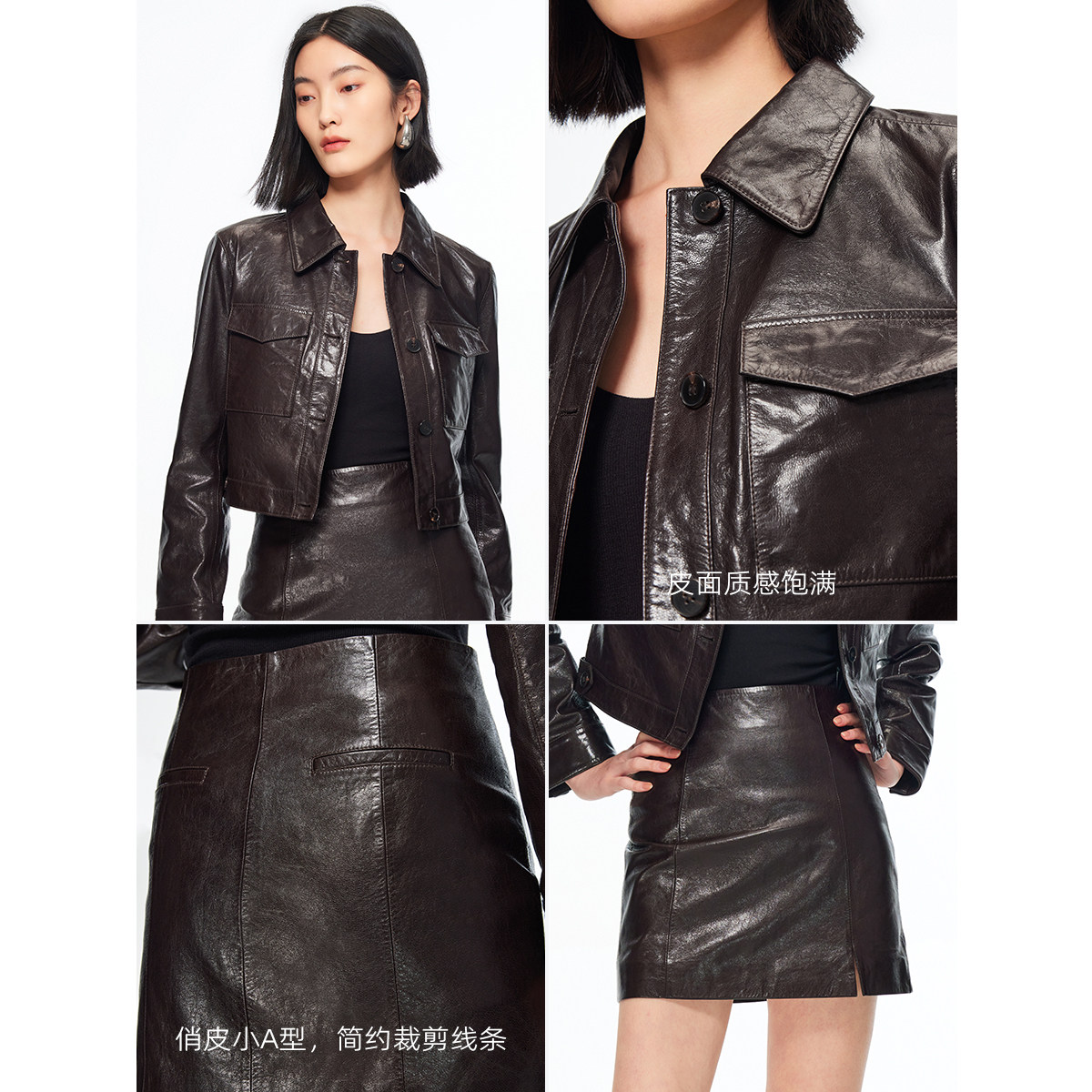 新款 女2026春季 羊皮革外套A字半身皮短裙326110004 Moda套装 Vero