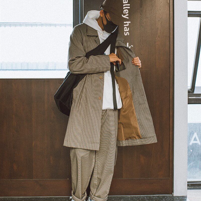 349元 BF宽松气质青年束带工装 任选3件 千鸟格纹中长款 风衣男 季
