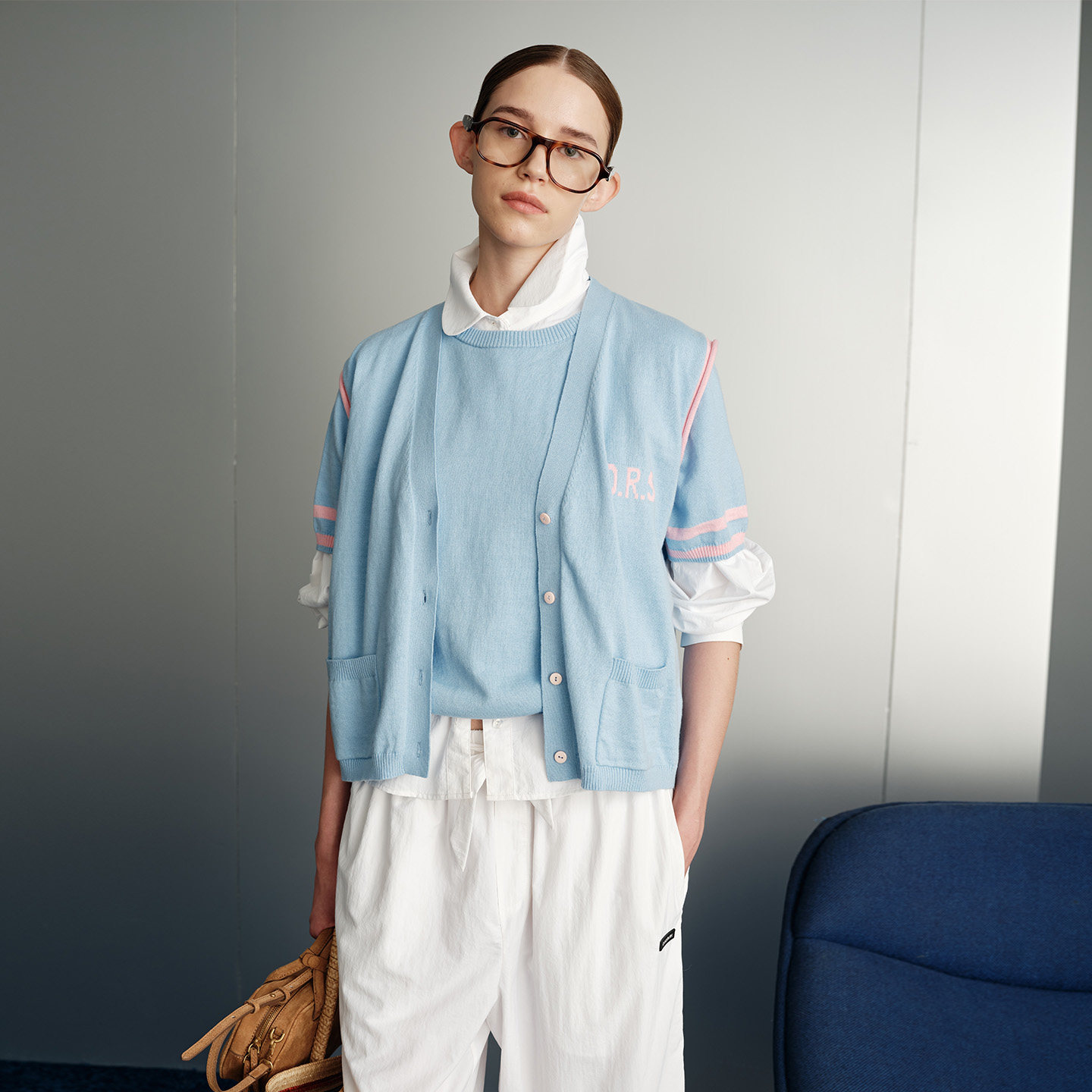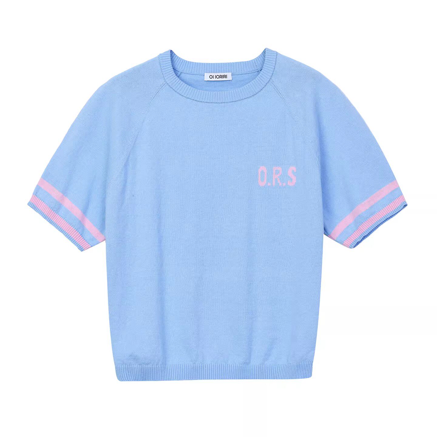 套头短袖 撞色字母提花针织打底衫 OIIORIRI 上衣2026春夏 新品