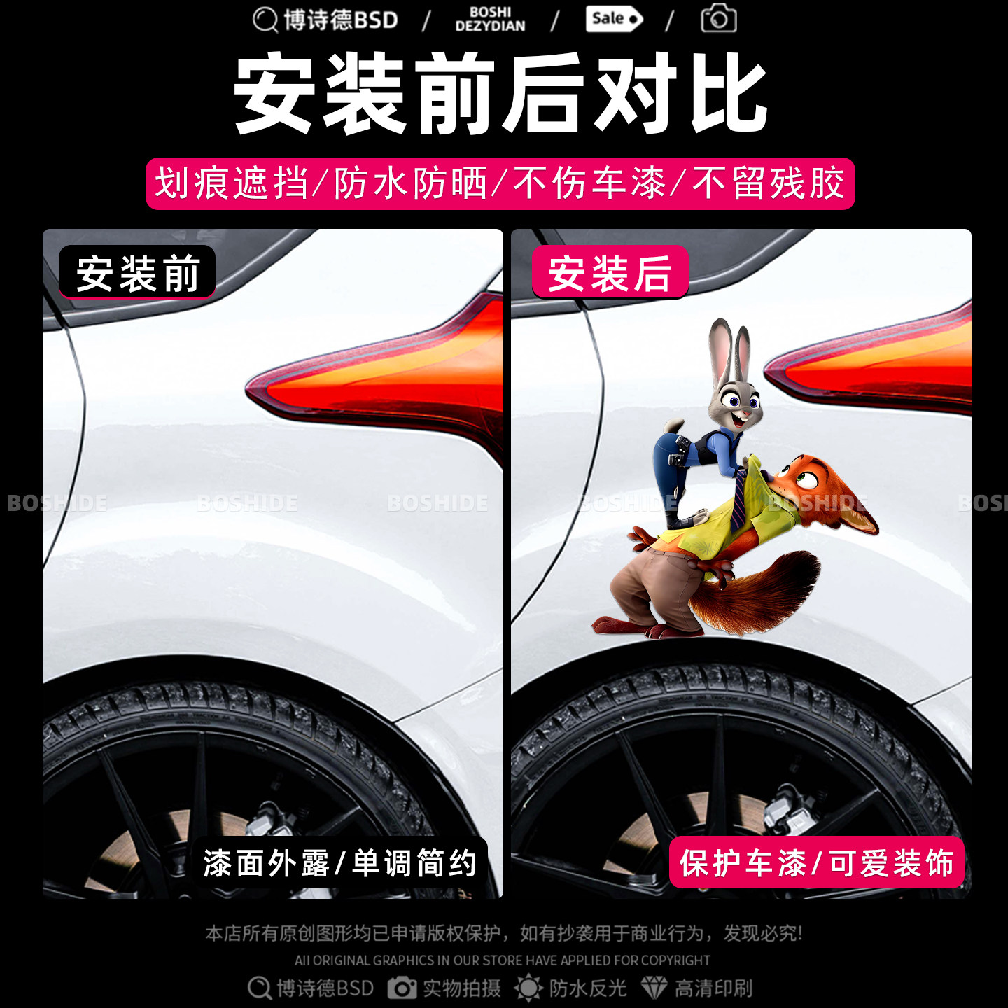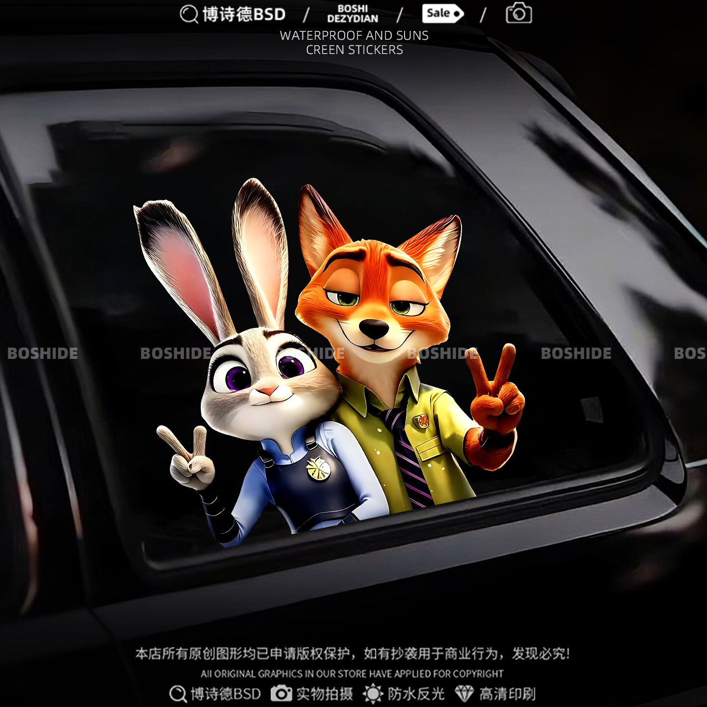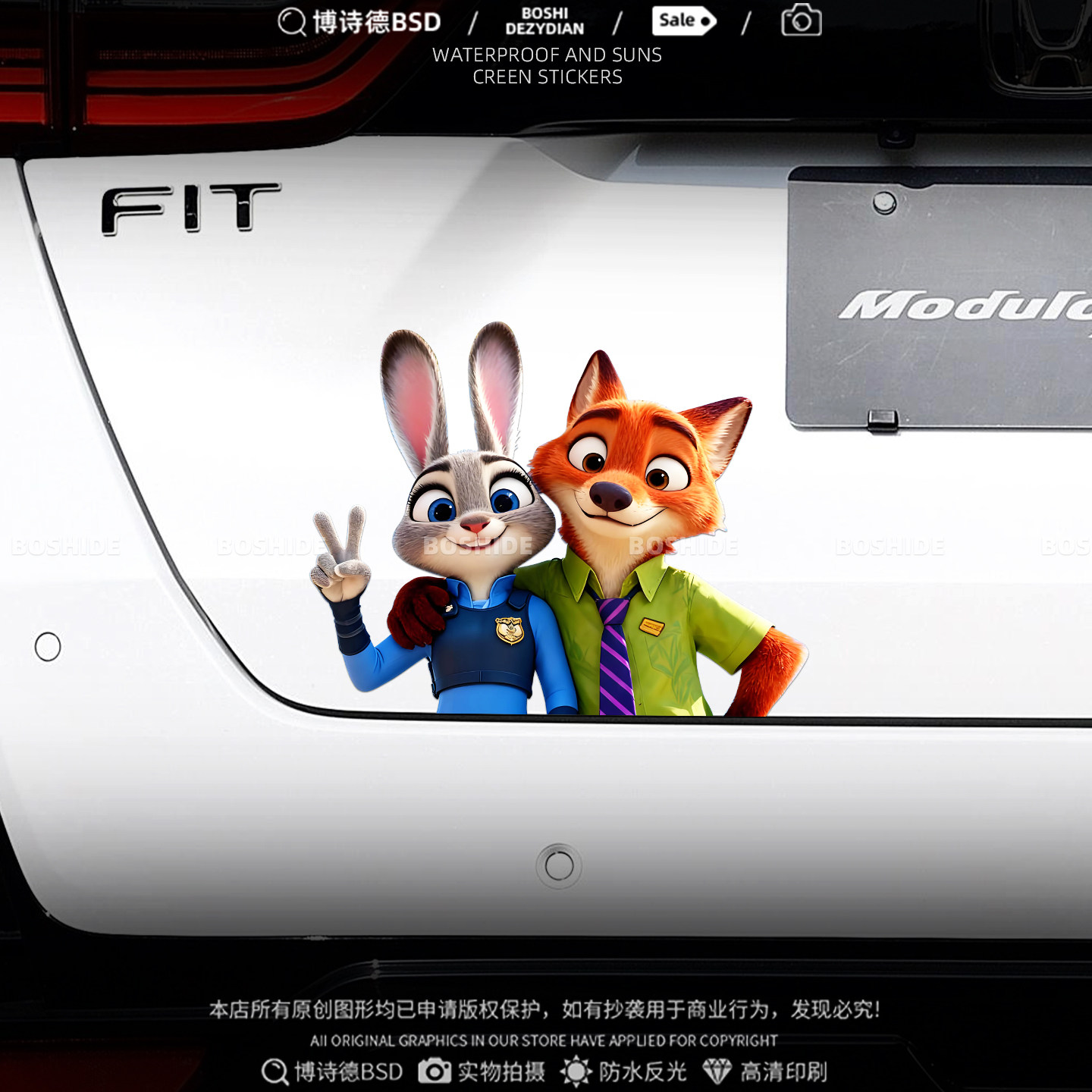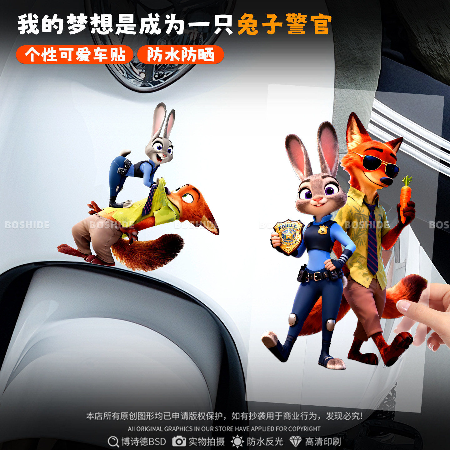 疯狂动物城汽车贴纸卡通兔子朱迪尼克车身电动车改装 饰遮挡刮痕贴